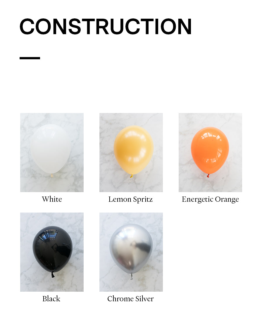 Balloon - white, lemon spritz, energetic orange, black, chrome silver