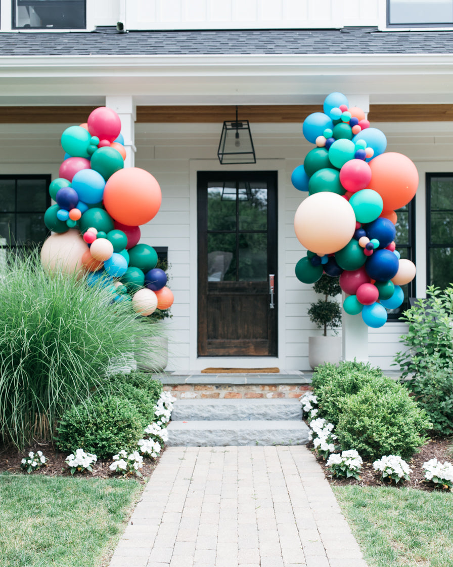 Celebrate in a big way with this eye-catching balloon garland. A great way to celebrate a kids birthday party, this piece can be installed on a fence, staircase or porch. Complete the look with mosaic numbers or balloon columns from this collection.