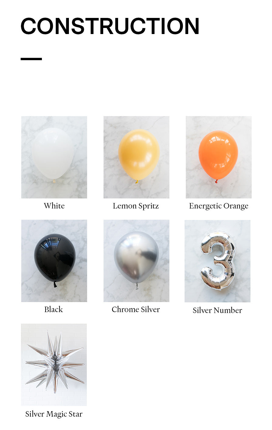 Balloon - white, lemon spritz, energetic orange, black, chrome silver