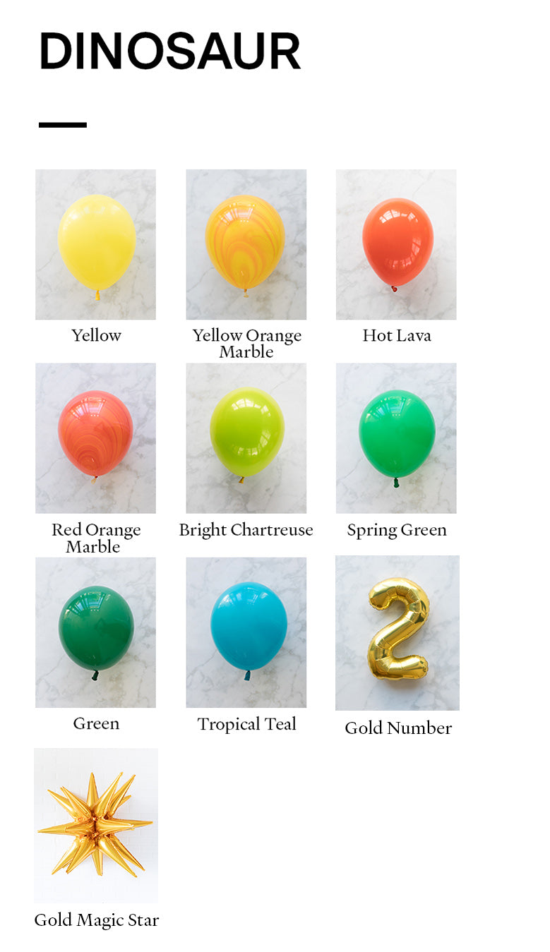 Balloon - yellow, yellow orange marble, hot lava, red orange marble, bright chartreuse, spring green, green, tropical teal
