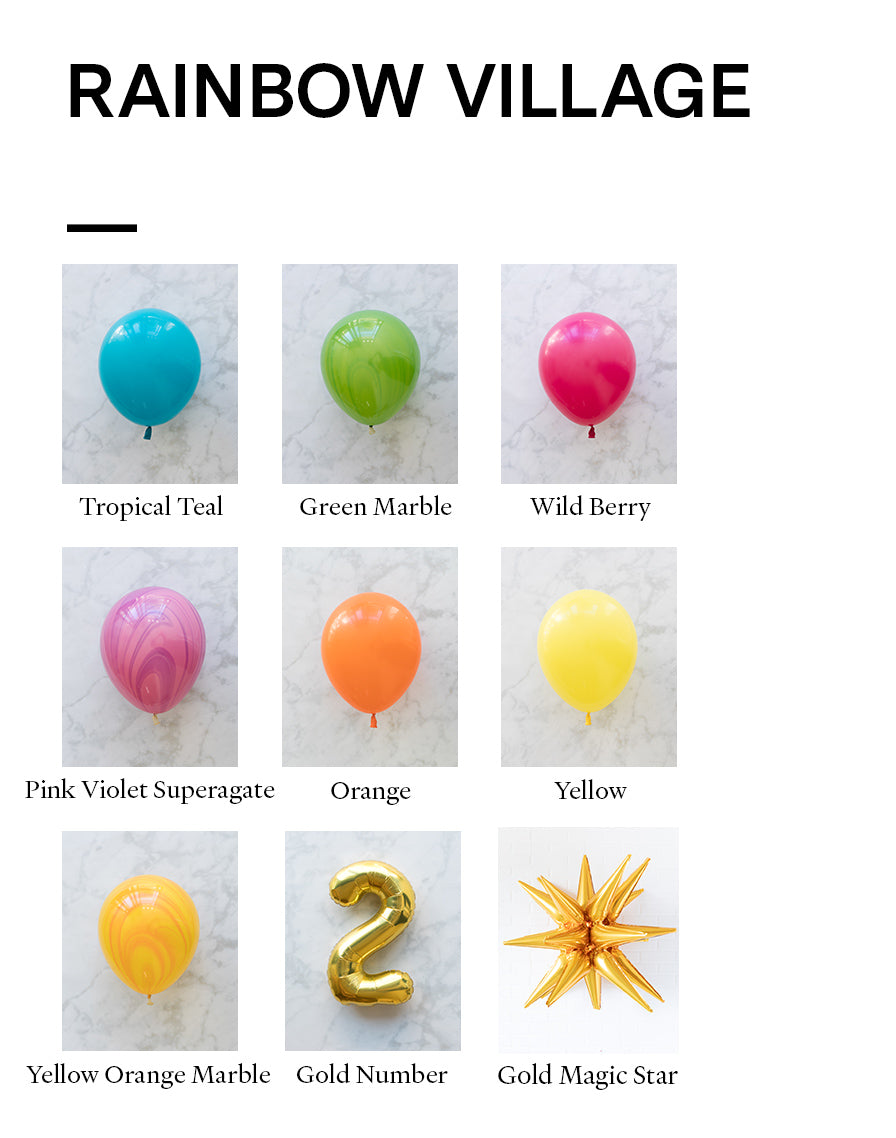 Balloon - tropical teal, orange, wildberry, yellow, pink & violet marble, yellow & orange marble, green marble