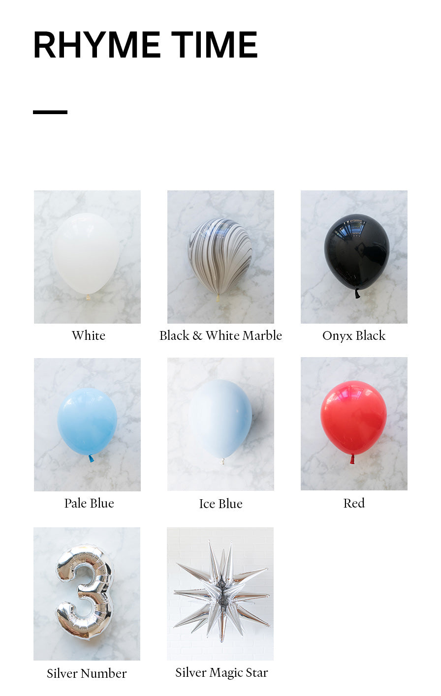 Balloon - red, white & black marble, black, pale blue, white, ice blue