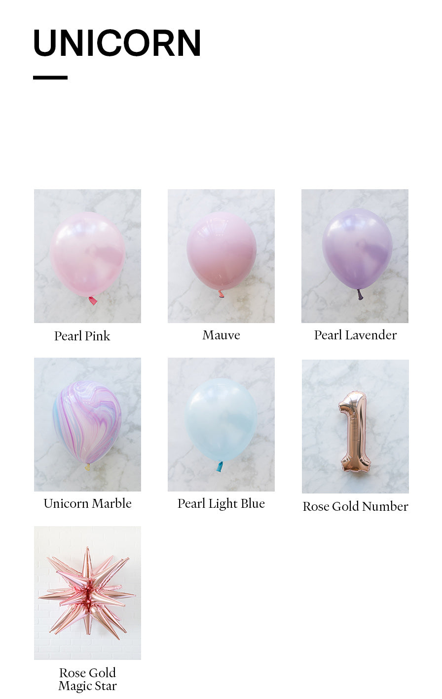 Balloon - pearl pink, mauve, pearl lavender, unicorn marble, pearl light blue
