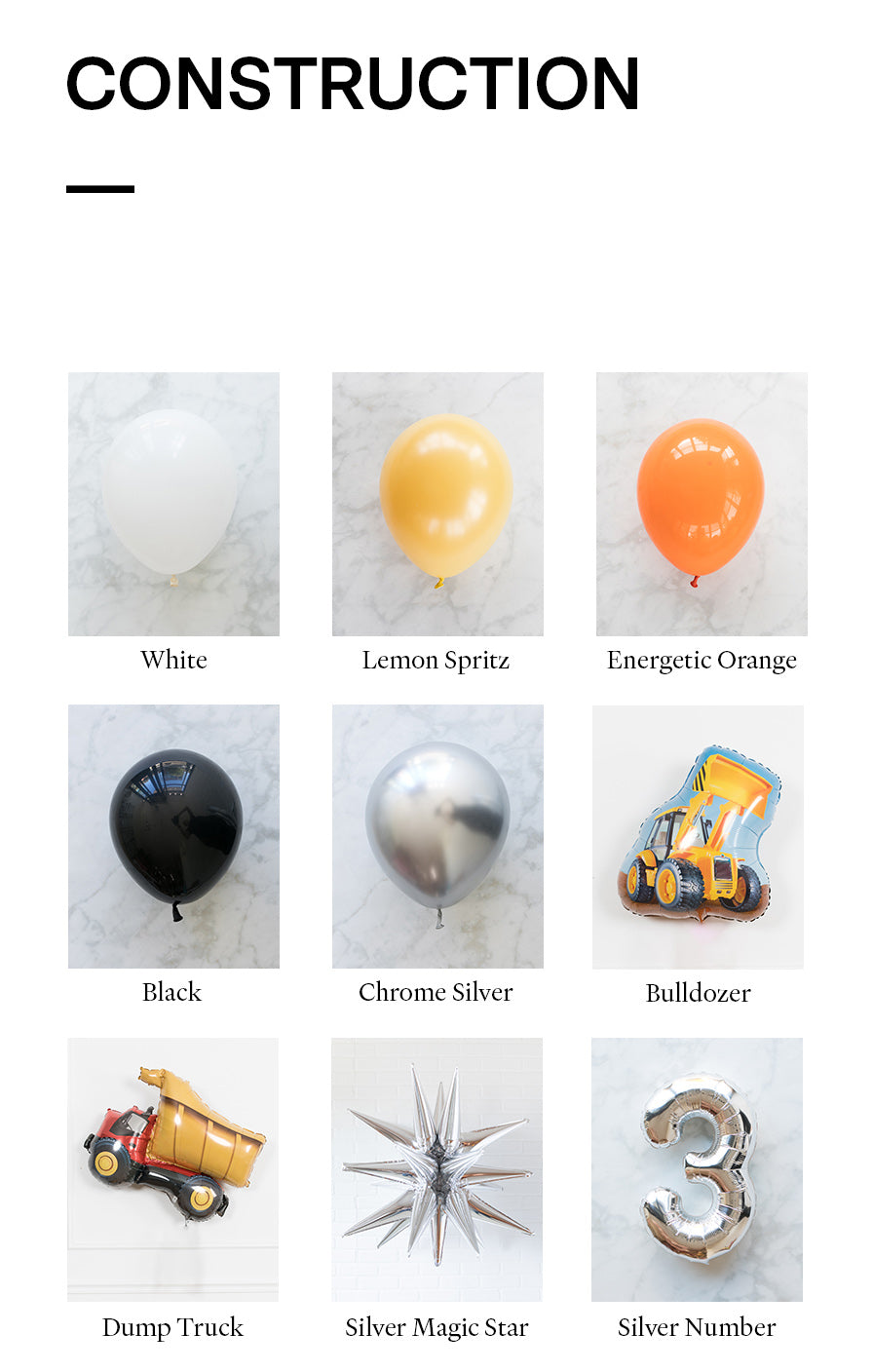 Balloon - white, lemon spritz, energetic orange, black, chrome silver