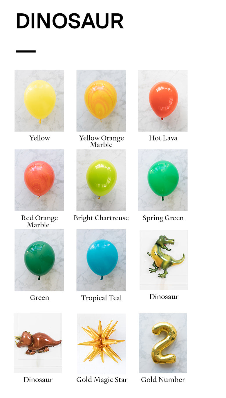 Balloon - yellow, yellow orange marble, hot lava, red orange marble, bright chartreuse, spring green, green, tropical teal