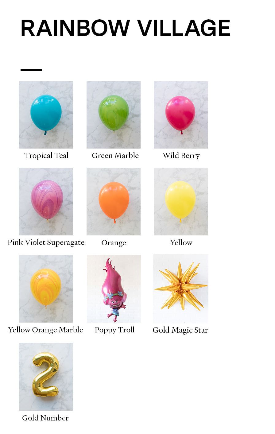 Balloon - tropical teal, orange, wildberry, yellow, pink & violet marble, yellow & orange marble, green marble