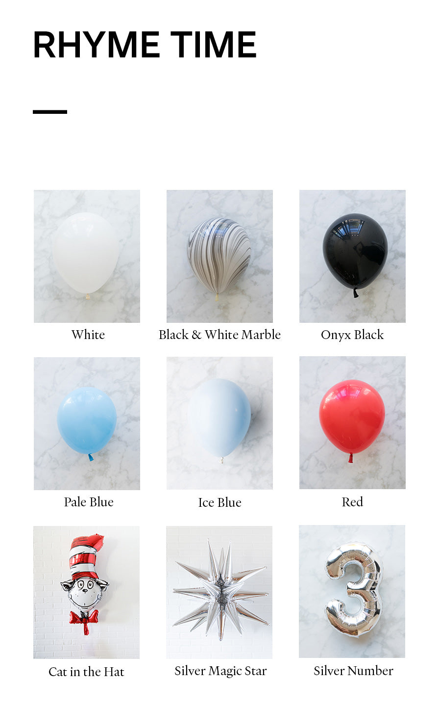 Balloon - red, white & black marble, black, pale blue, white, ice blue