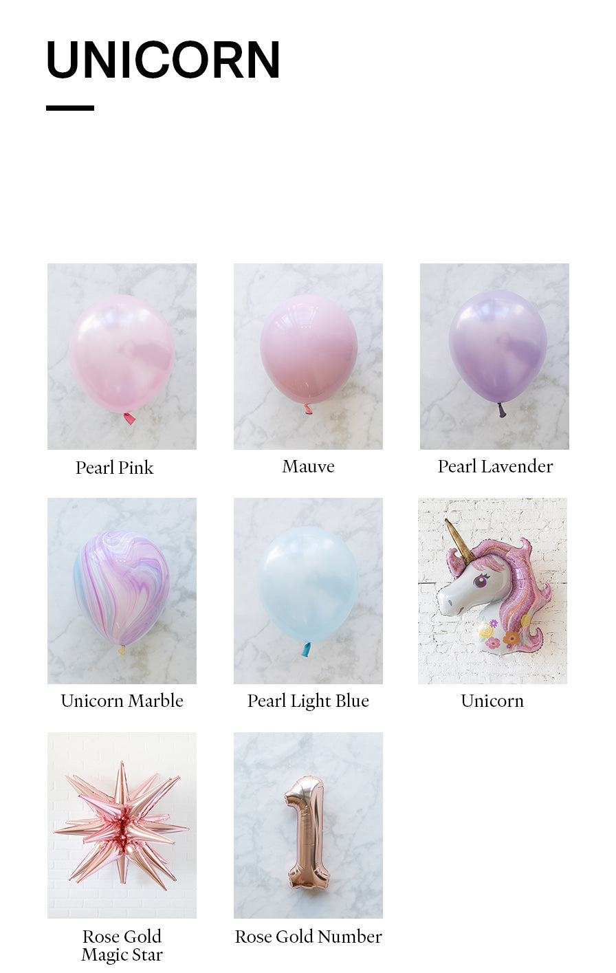 Balloon - pearl pink, mauve, pearl lavender, unicorn marble, pearl light blue