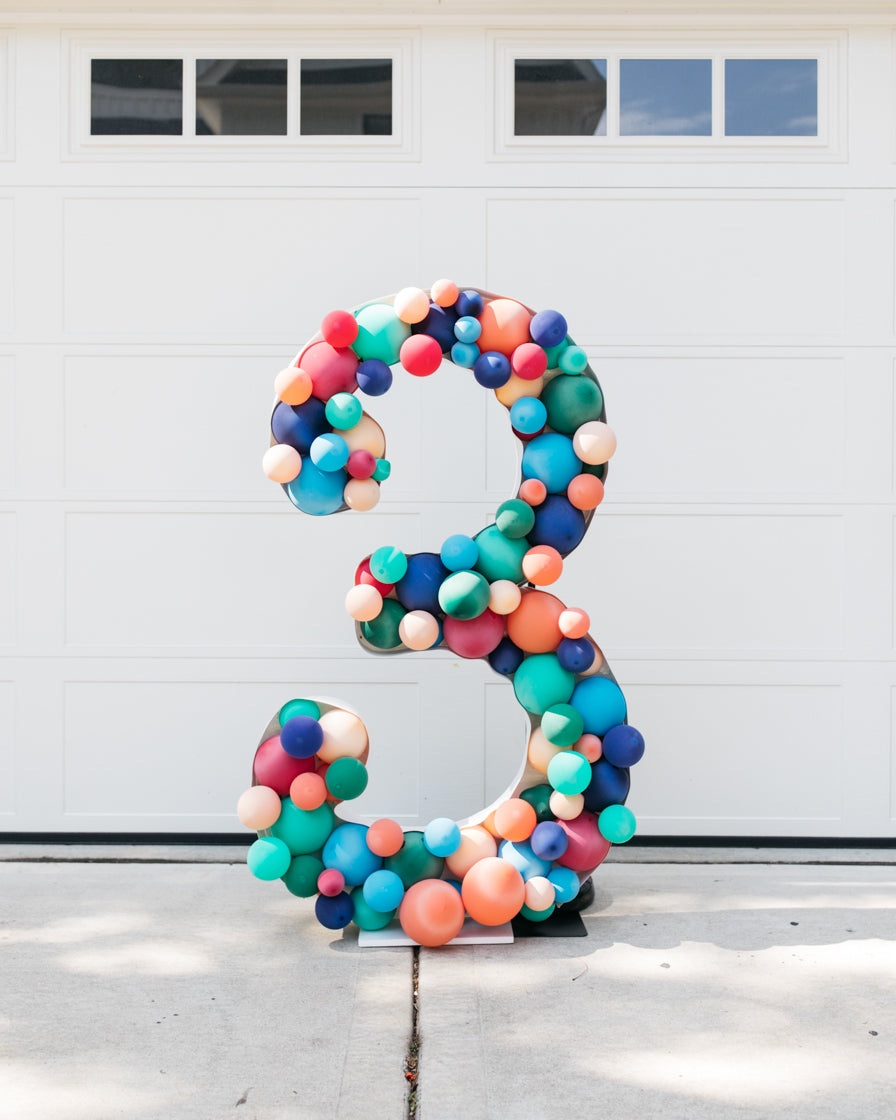 An eye-catching balloon piece fit for an outdoor event. These balloon mosaic numbers with bold colored balloons are perfect for a backdrop, sweets table and more! Complete the look with balloons from this collection.