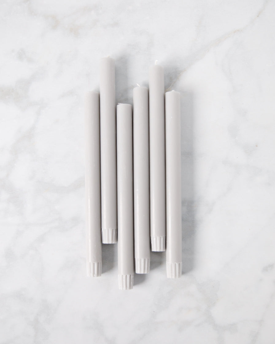 Eco and Fair Trade dinner candles, hand poured in British Colour Standard Gull Grey.