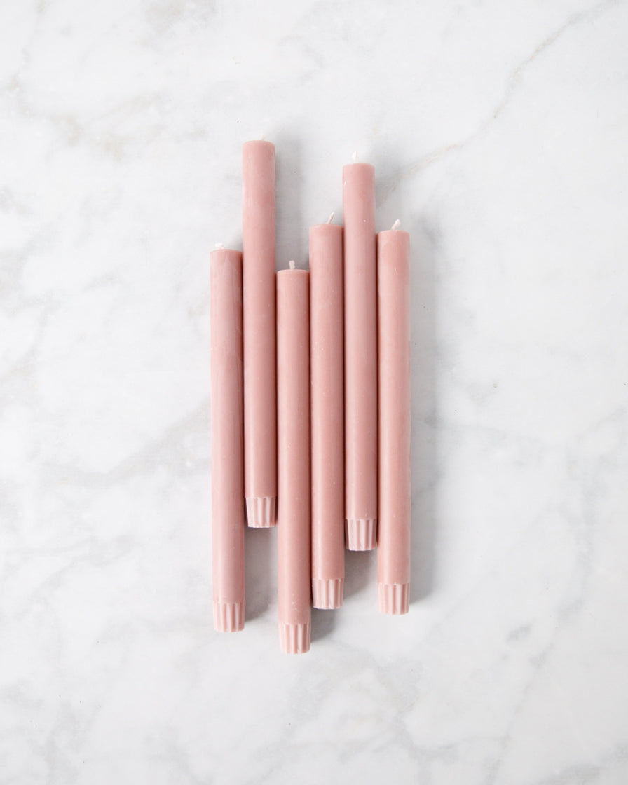 Eco and Fair Trade dinner candles, hand poured in British Colour Standard Old Rose.
