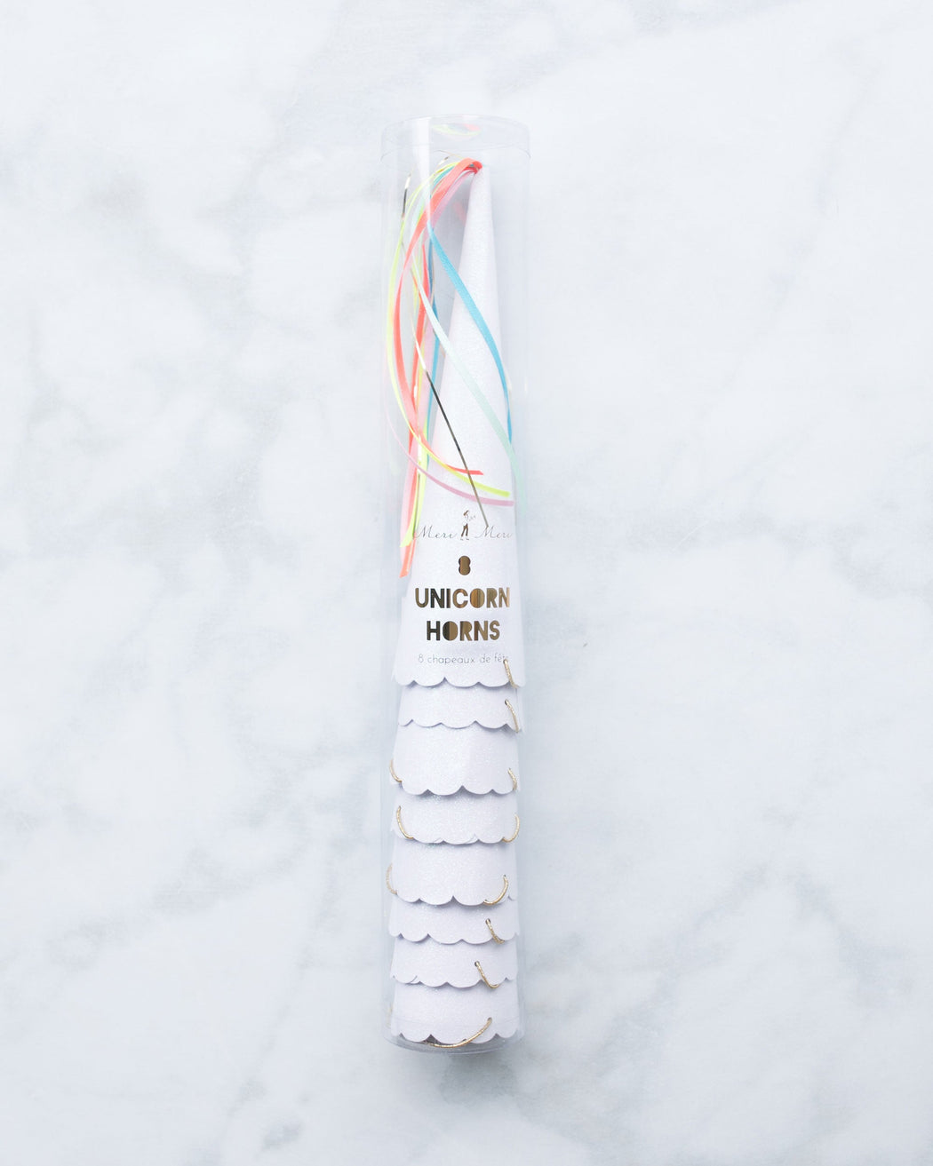 Wow your guests with these fabulous unicorn horn party hats. Each one is beautifully crafted from sparkly glitter paper and embellished with a colored ribbon.