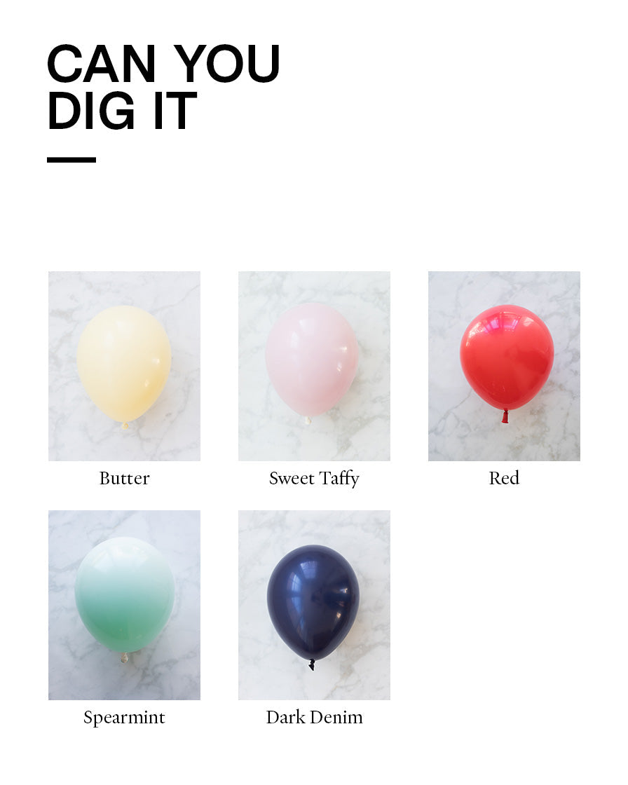 Balloon - butter, spearmint, red, sweet taffy, dark denim