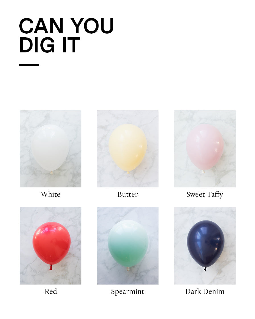 Balloon - butter, white, spearmint, red, sweet taffy, dark denim