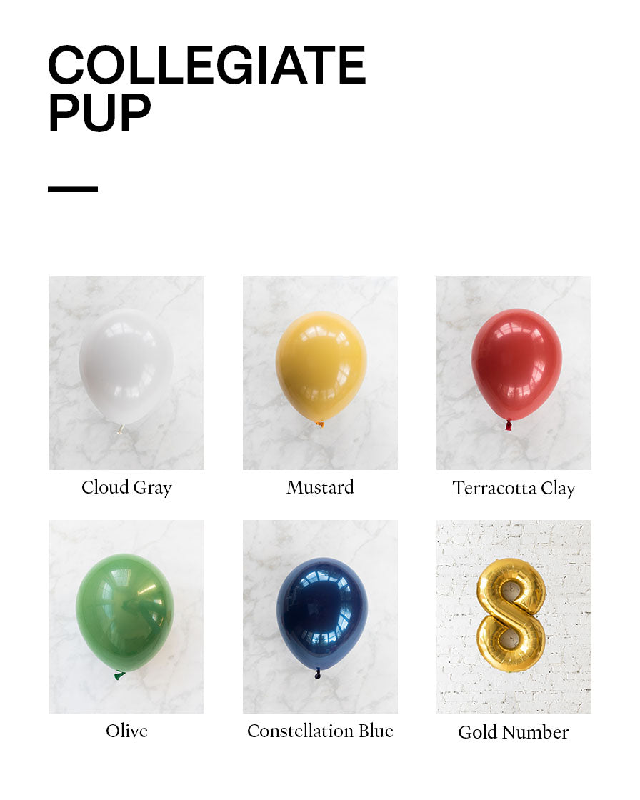 Dress up your pet's party with this easy birthday decoration. This balloon base includes a metallic number to celebrate any age and air filled latex balloons in bright shades for a fun look.