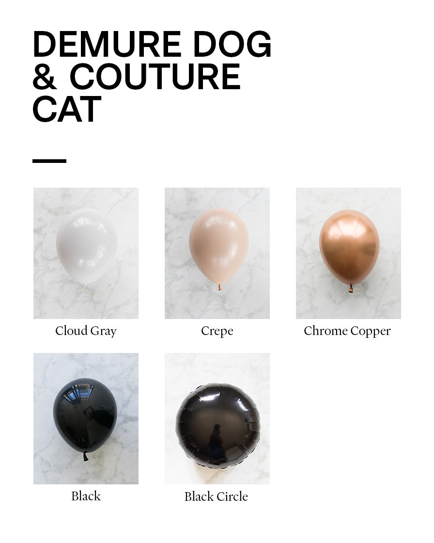 Demure Dog/Couture Cat - Foil and 11in Balloons - bouquet of 5