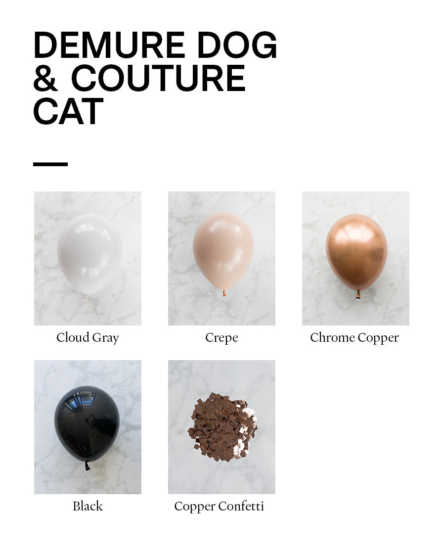 Demure Dog/Couture Cat - Mini Confetti and 11in Balloons - bouquet of 7