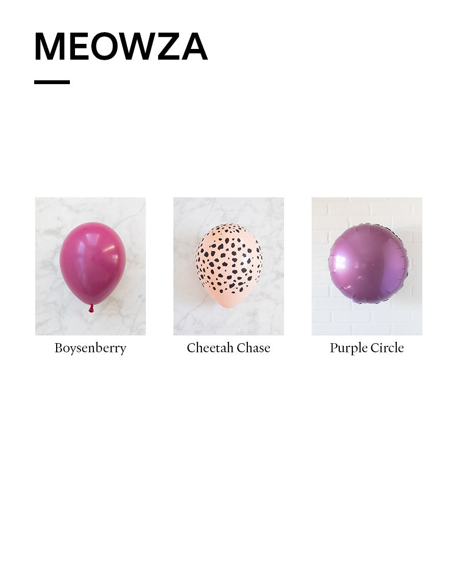 Balloon - boysenberry, cheetah chase Foil - purple circle