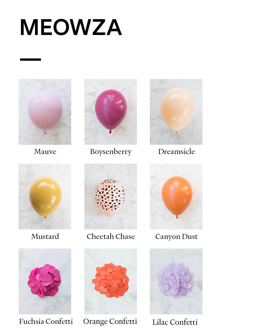 Meowza - Mini Confetti and 11in Balloons - bouquet of 7