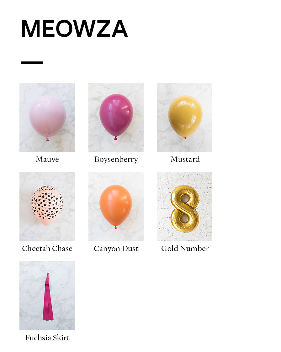 Balloon - canyon dust, boysenberry, mustard, dreamsicle, mauve, cheetah chase