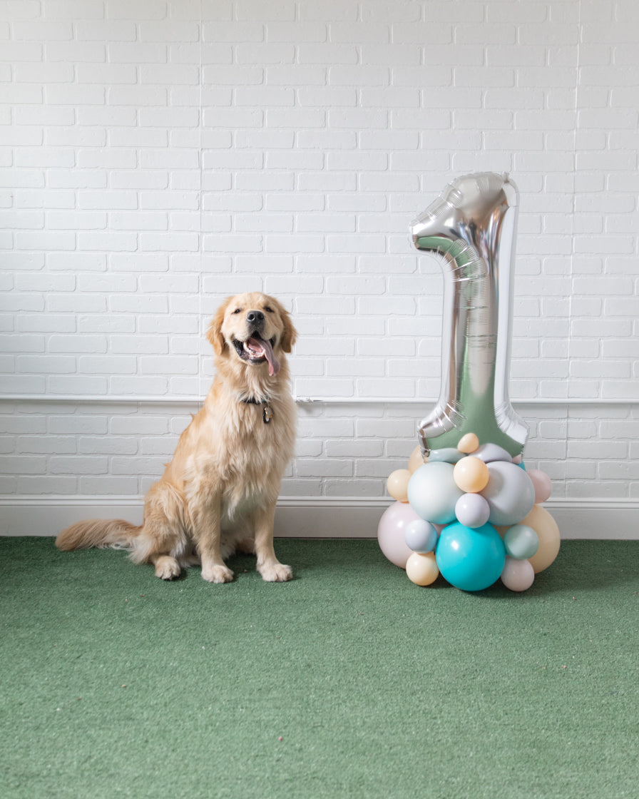 Dress up your pet's party with this easy birthday decoration. This balloon base includes a metallic number to celebrate any age and air filled latex balloons in bright shades for a fun look.