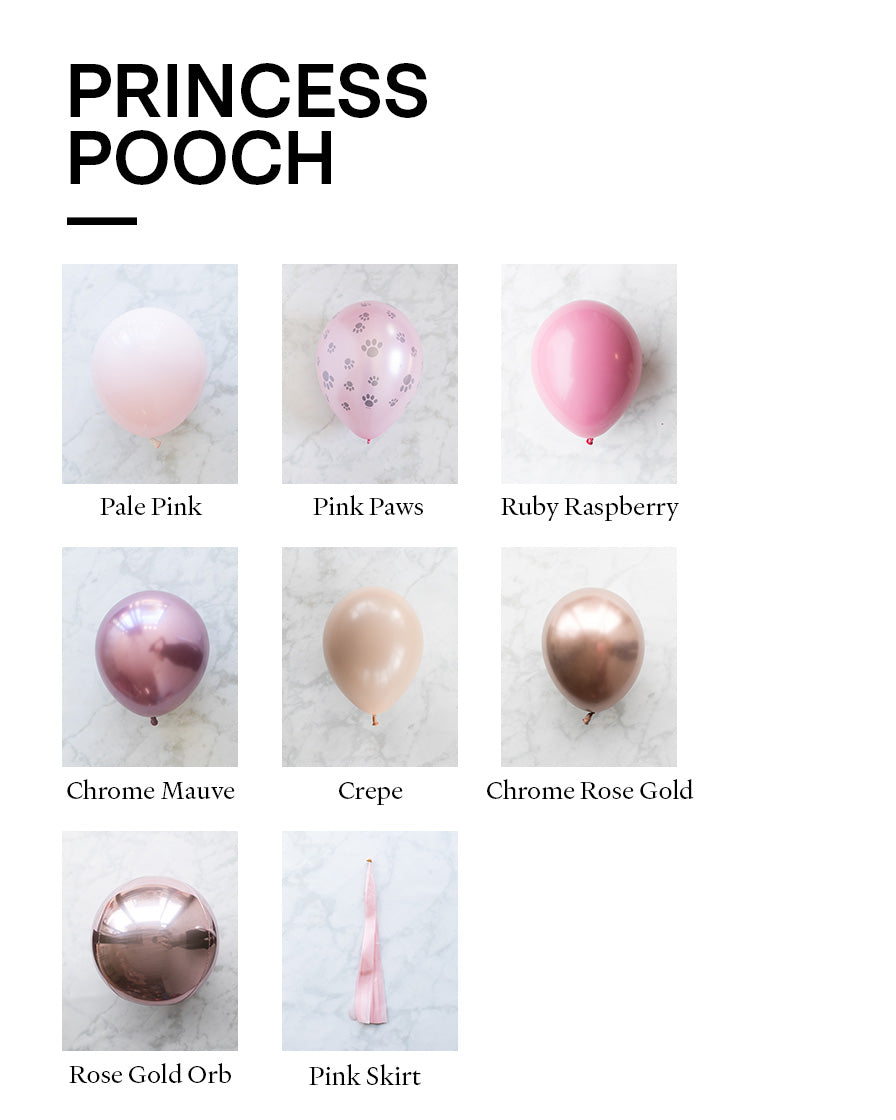 Balloon - ruby raspberry, pink paws, pale pink, crepe, chrome rose gold, chrome mauve