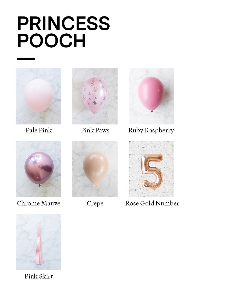 Balloon - ruby raspberry, pink paws, pale pink, crepe, chrome rose gold, chrome mauve