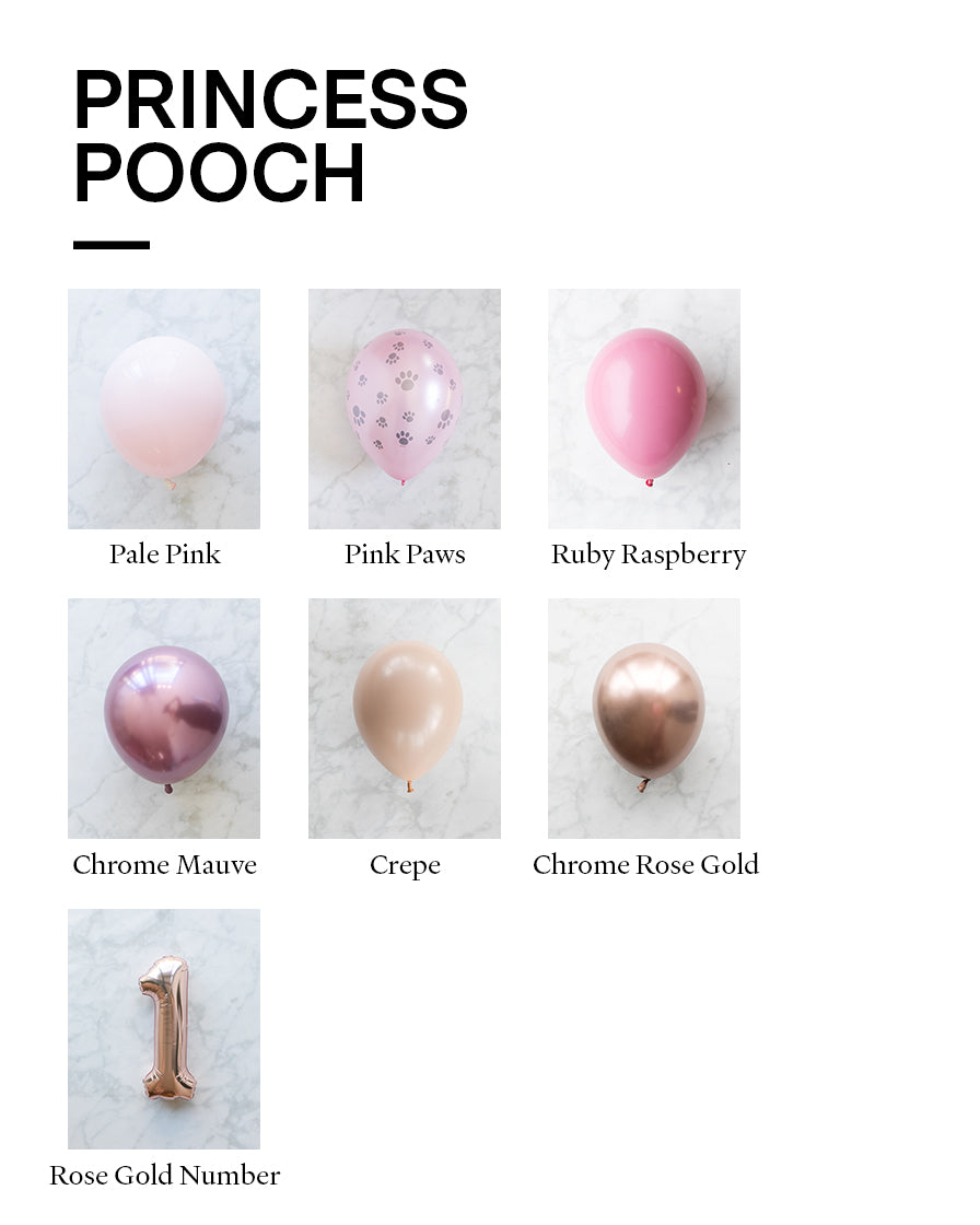 Balloon - ruby raspberry, pink paws, pale pink, crepe, chrome rose gold, chrome mauve