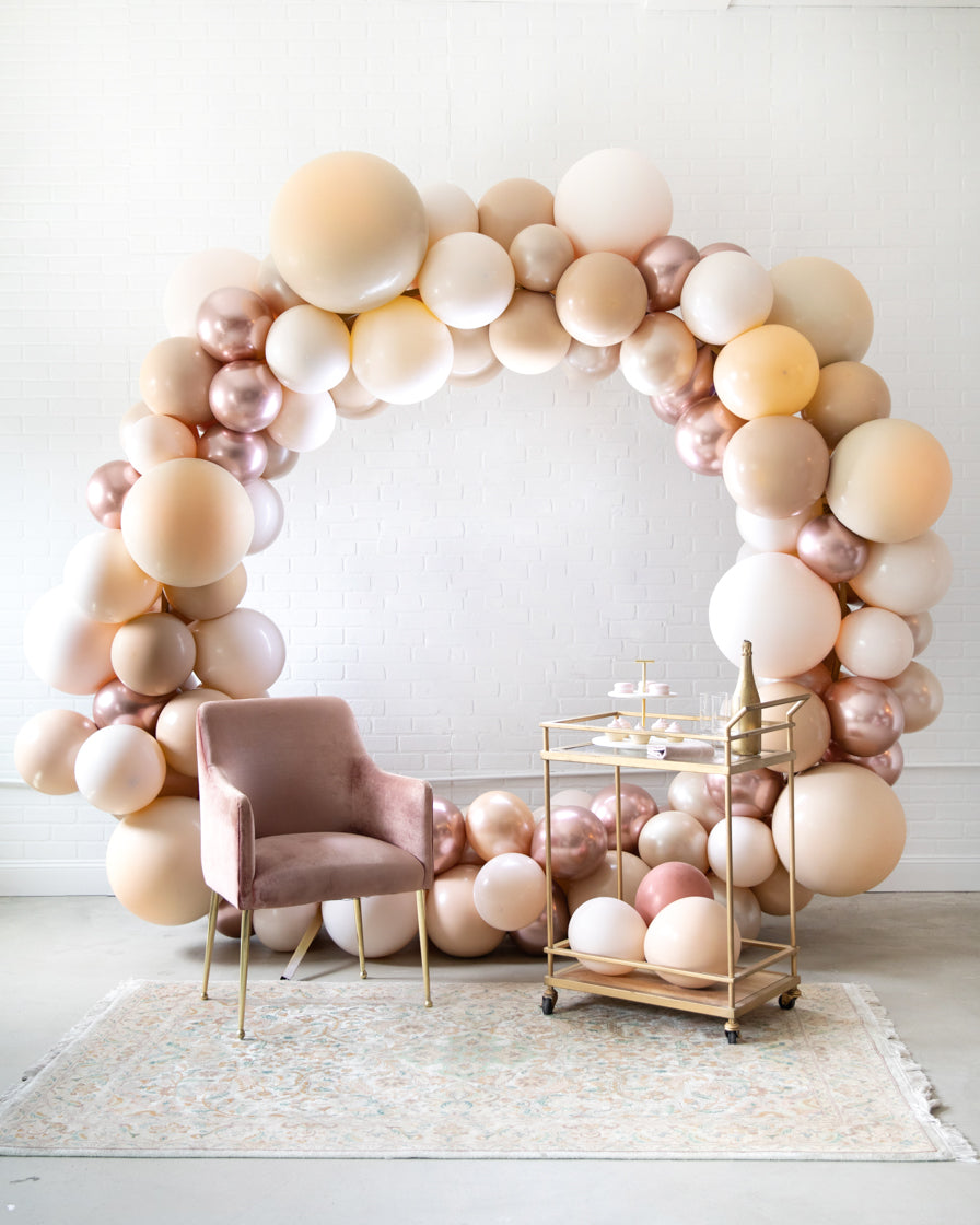 Make this a celebration you'll never forget with our signature garland on circular frame. This design creates an instant photo backdrop that your guests will love! With a gold frame this stand alone design can be used in any space with ease.