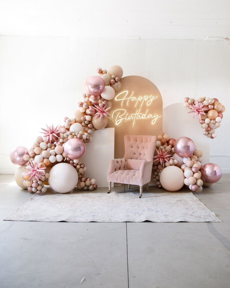 Stand out in style with this panel and balloon garland design. This includes a 7ft panel backdrop with organic balloon garland to match. Add foil accents to make your photo backdrop stand out even more!