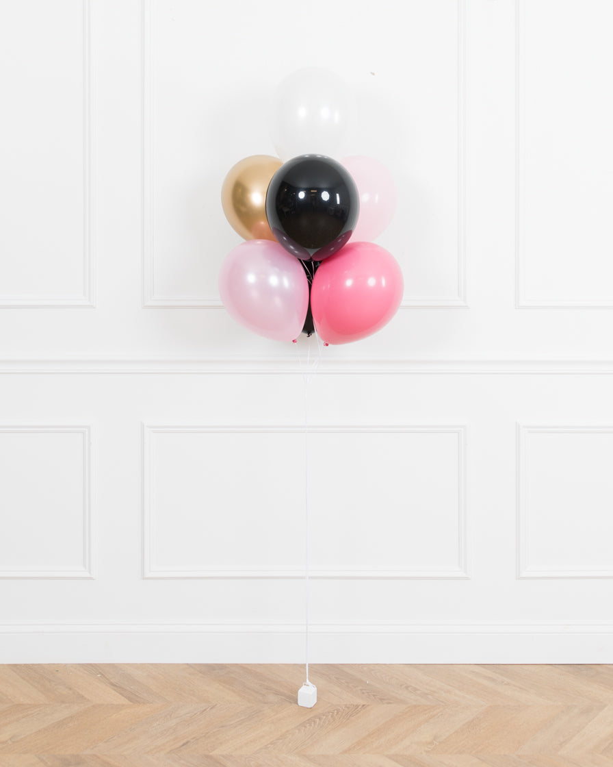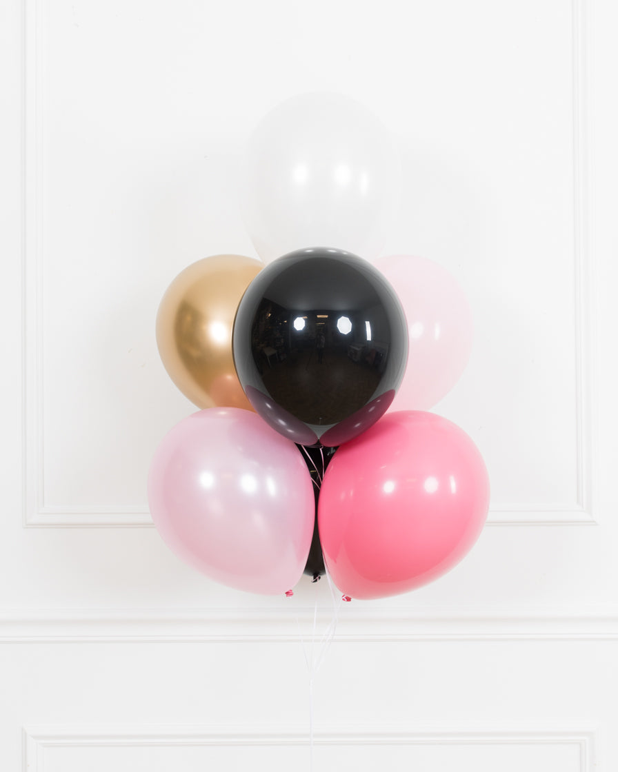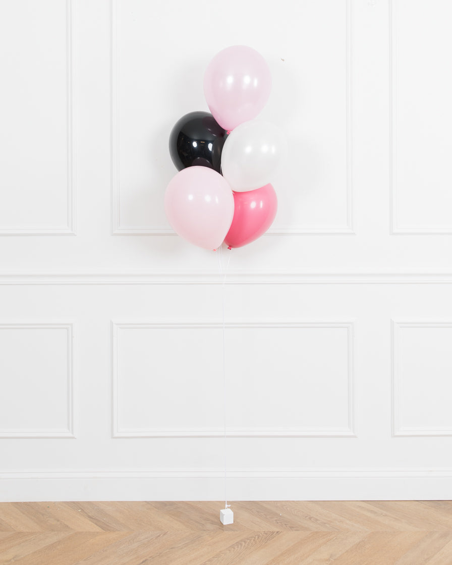 Create an easy and fun birthday with a classic helium-filled balloon bouquet that can dress up any space. Includes 5 or 7 balloons in a bright palette of black and pinks for a Minnie Mouse themed kids bash!