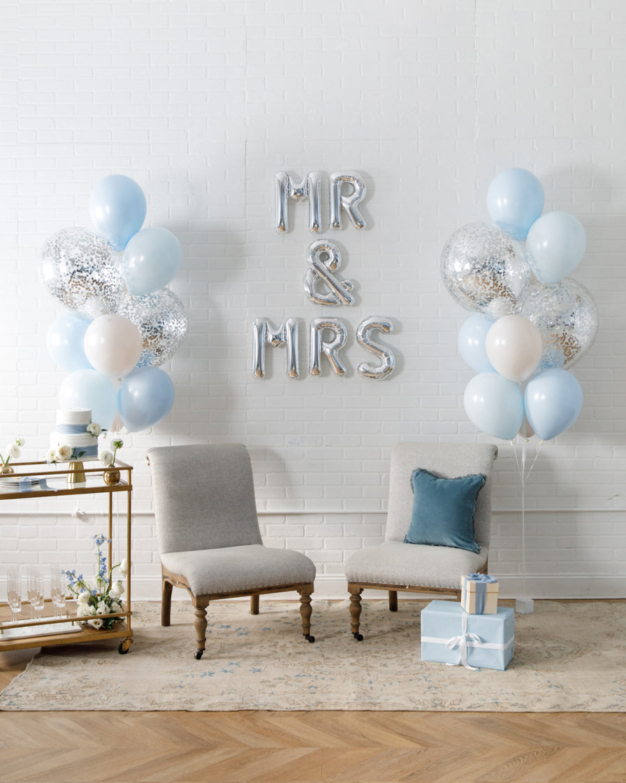 Create a simple and stylish set up for your bridal shower, engagement party or rehearsal dinner with this festive pairing. This includes two confetti bouquets and a foil letter message that will perfectly dress up your sweets or gift table.