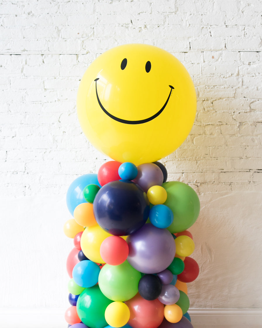 Rainbow Palette and Happy Face Balloon Column - 4ft