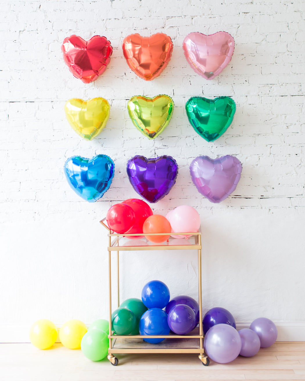Rainbow Palette Foil Hearts Backdrop and Floor Balloon Set
