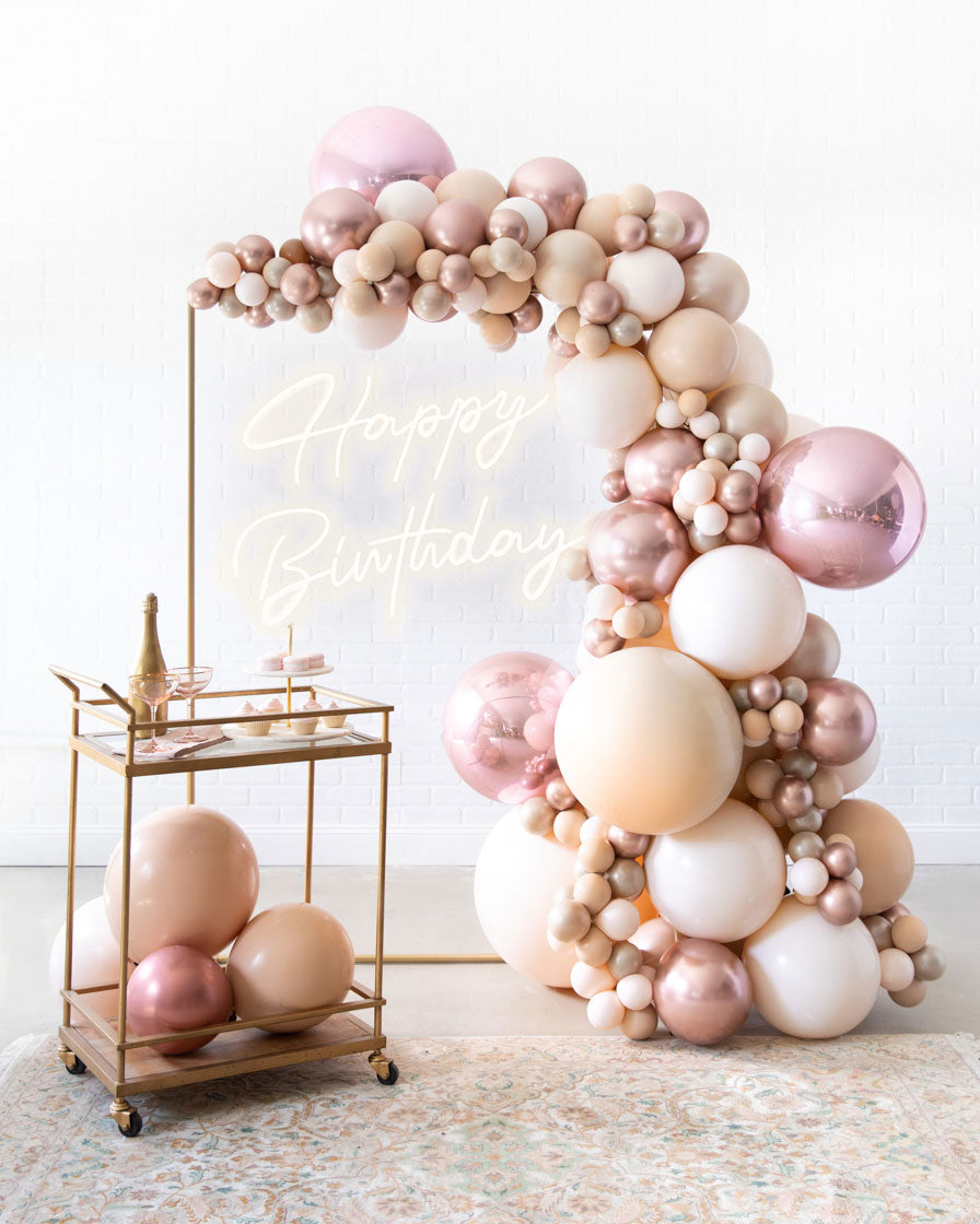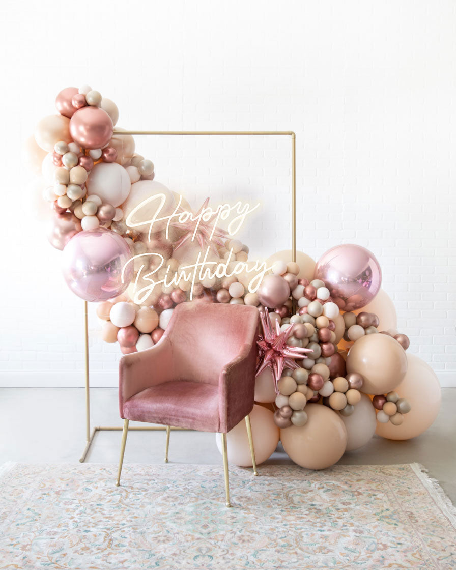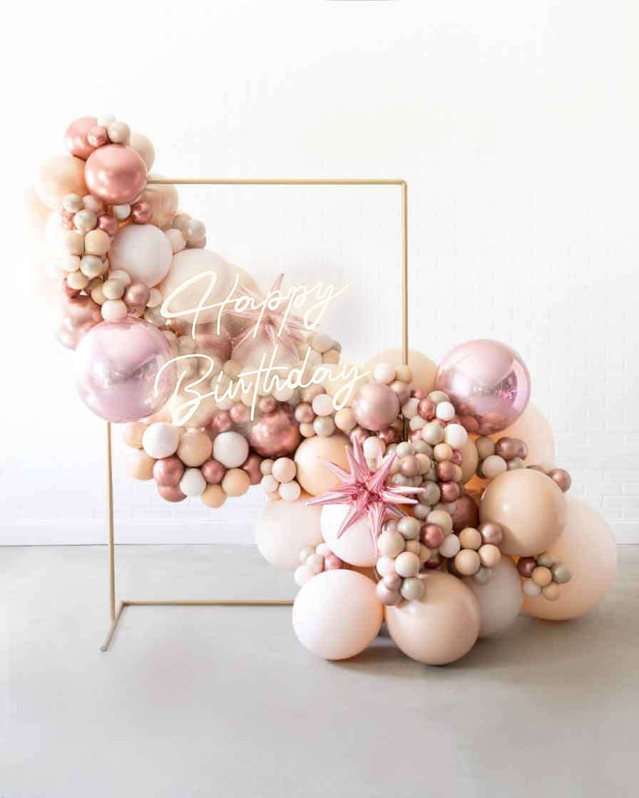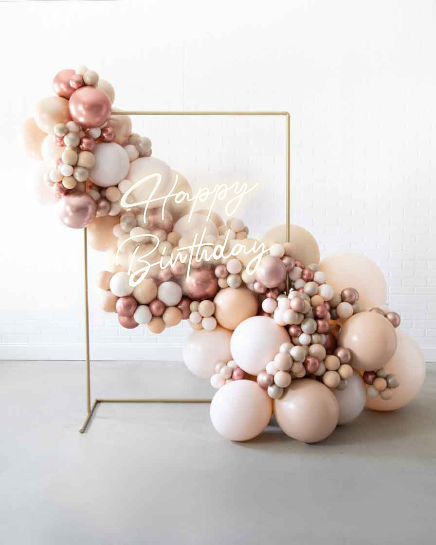 Light up your event with the ultimate backdrop! This balloon garland design includes balloons along a circular frame, as well as a beautiful neon sign to highlight your occasion in style! This works perfectly in any space and will wow your guests!