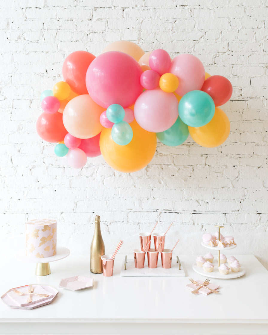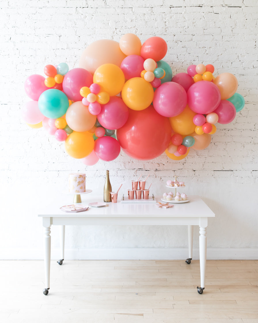 Spread some cheer with this eye-catching balloon garland. A great way to celebrate an important occasion, this piece can be installed above a sweets table or on a wall for a photo op. Complete the look with giant balloons or balloon columns from this same collection.