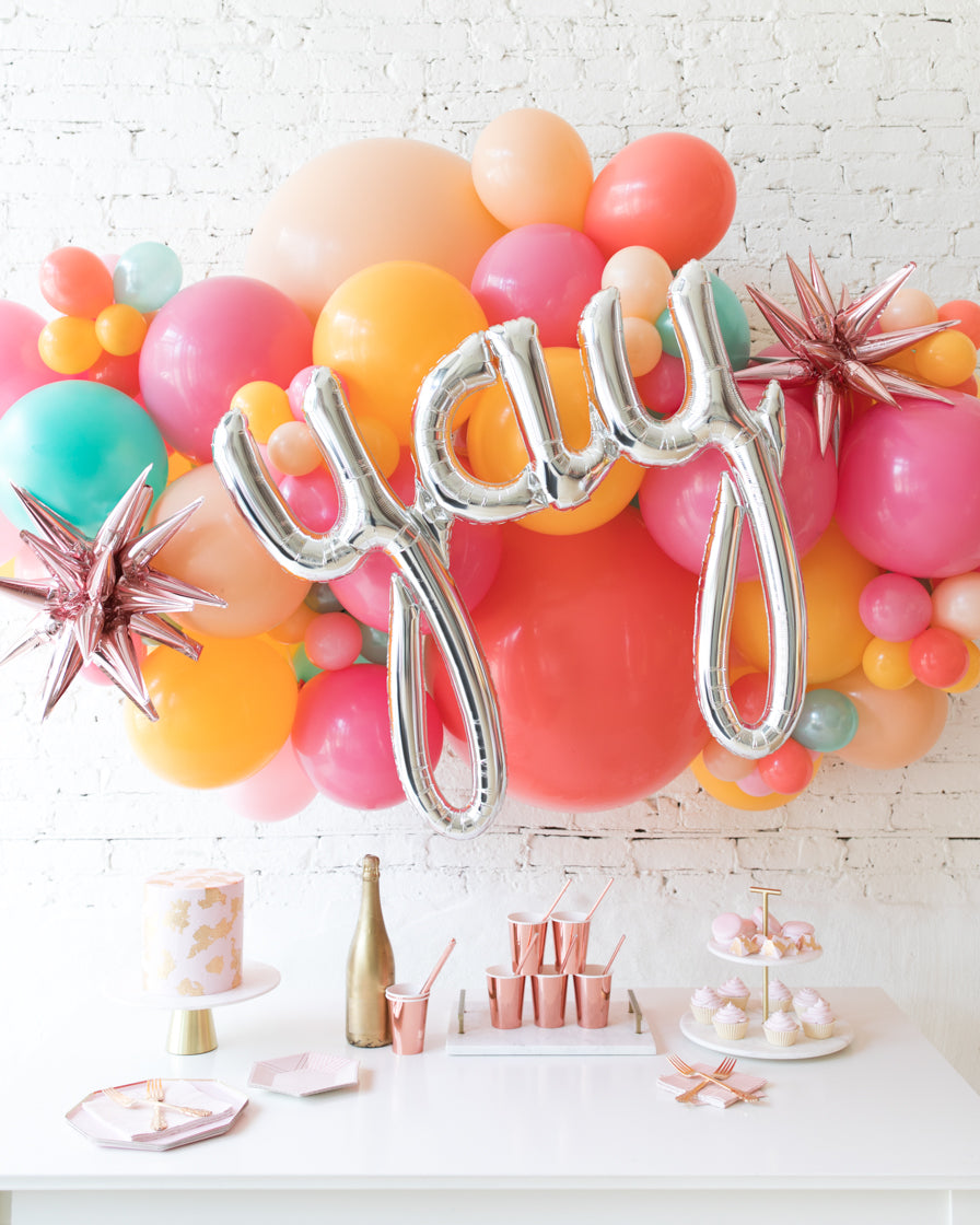 Spread some cheer with this eye-catching balloon garland. A great way to celebrate an important occasion, this piece can be installed above a sweets table or on a wall for a photo op. Complete the look with giant balloons or balloon columns from this same collection.