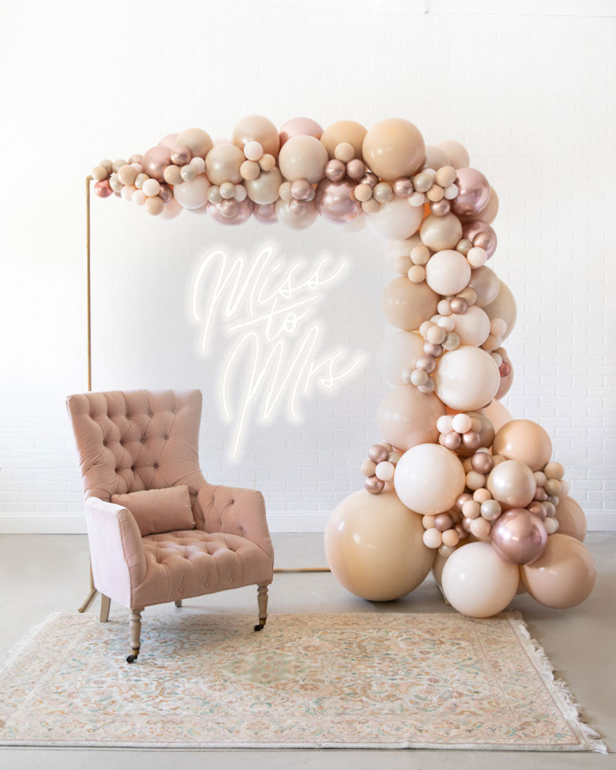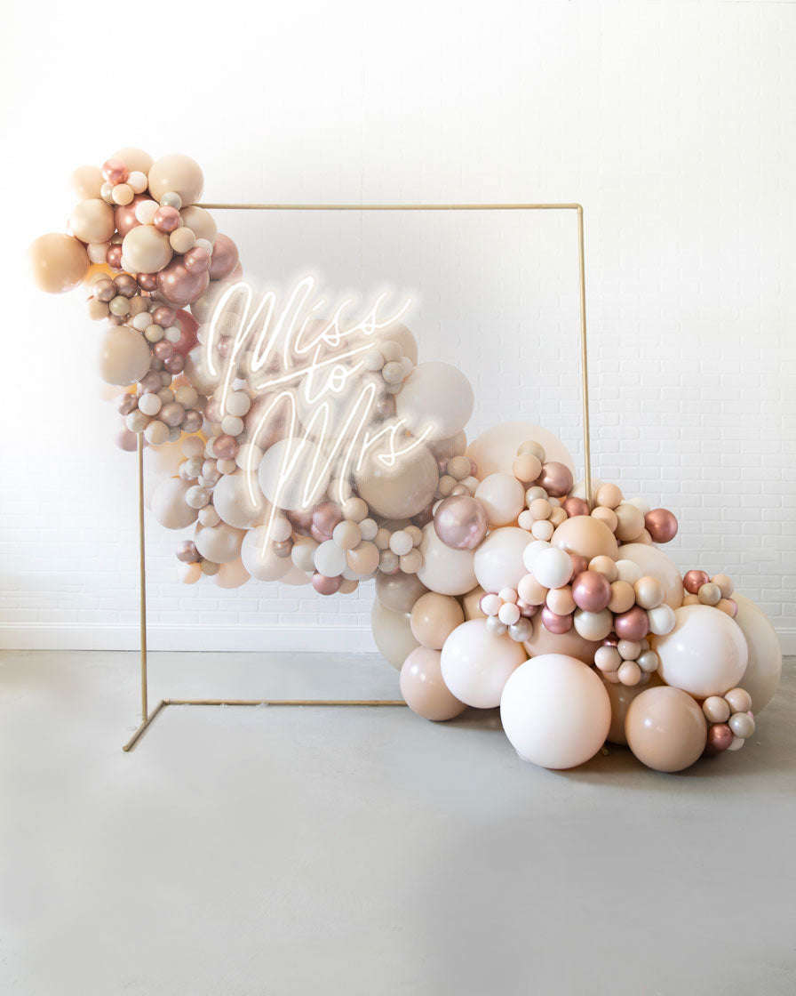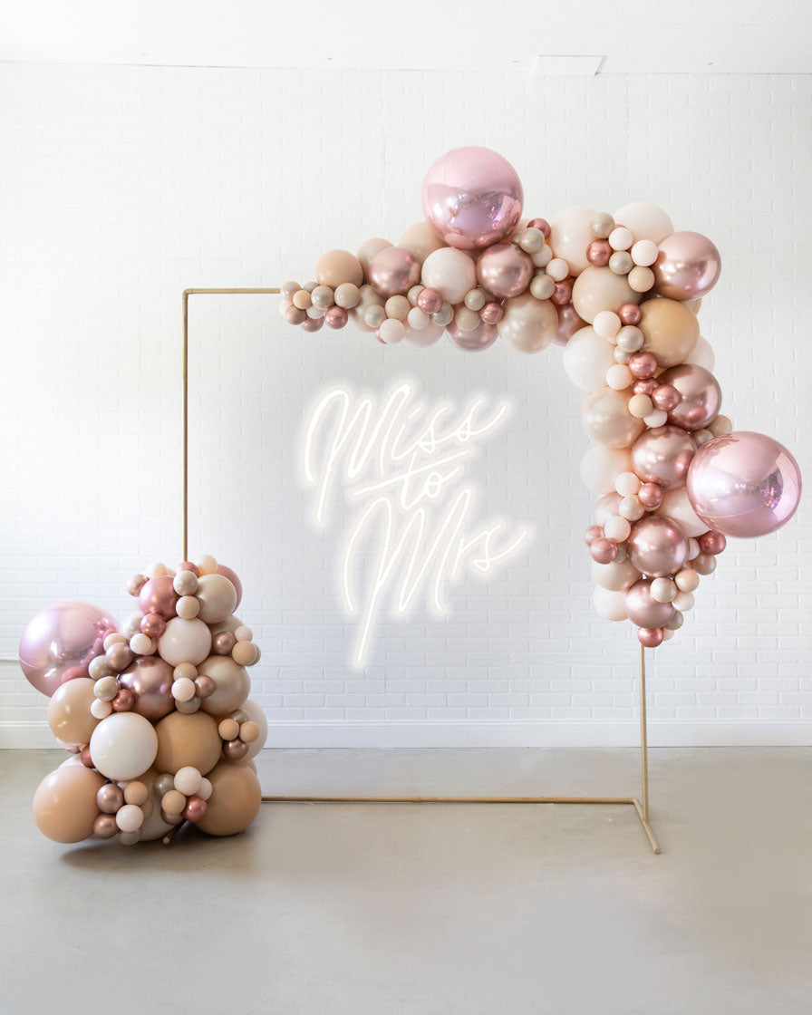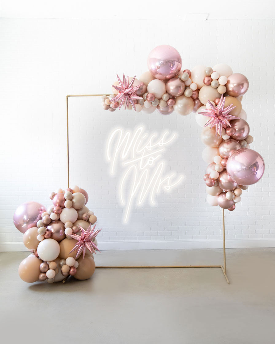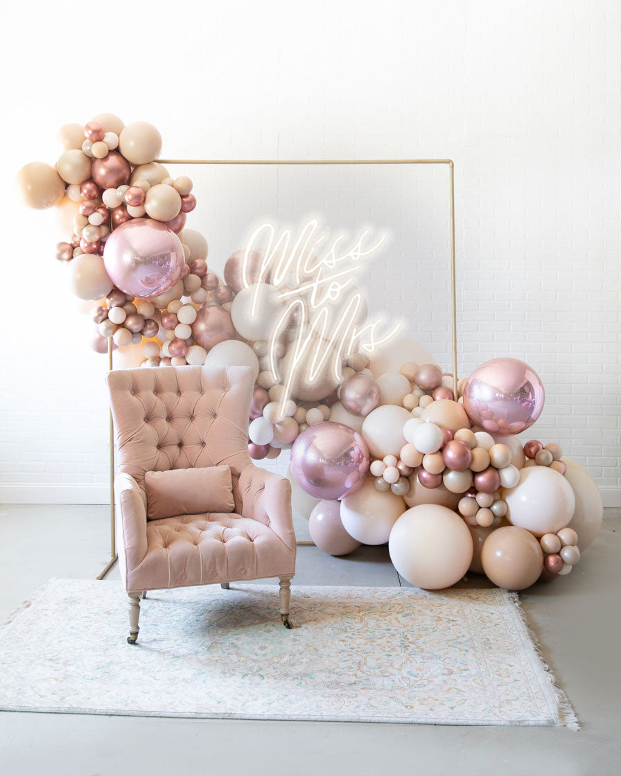 Light up your event with the ultimate backdrop! This balloon garland design includes balloons along a circular frame, as well as a beautiful neon sign to highlight your occasion in style! This works perfectly in any space and will wow your guests!
