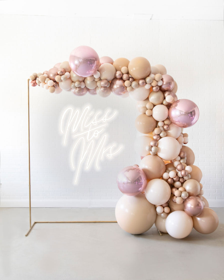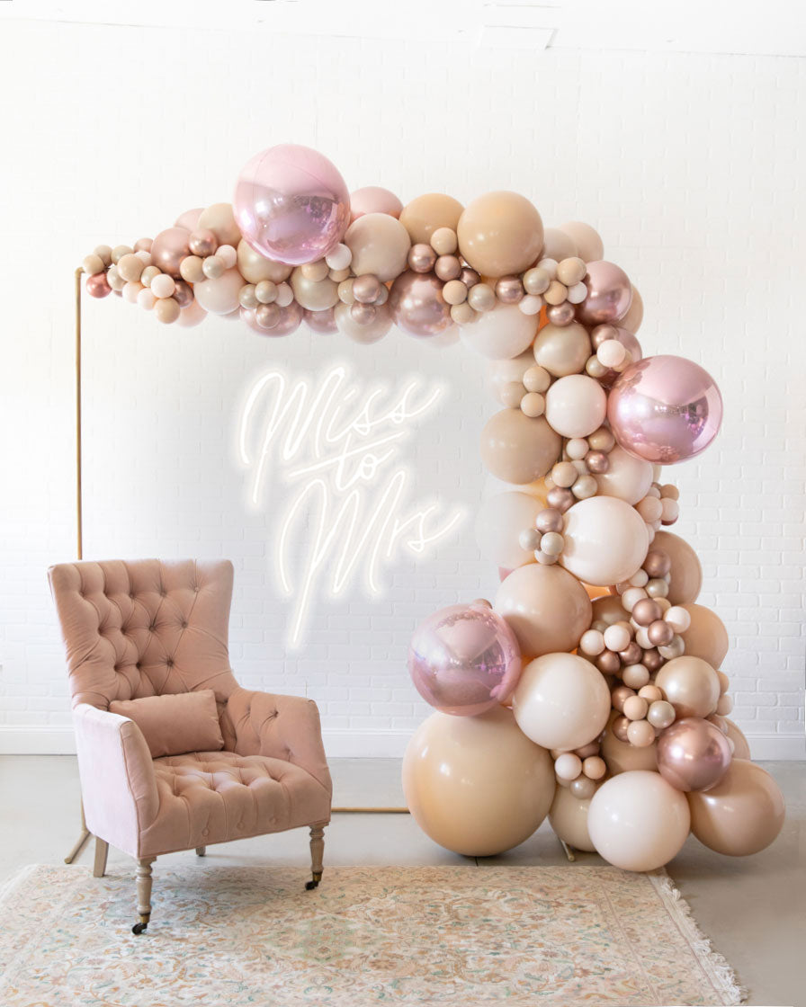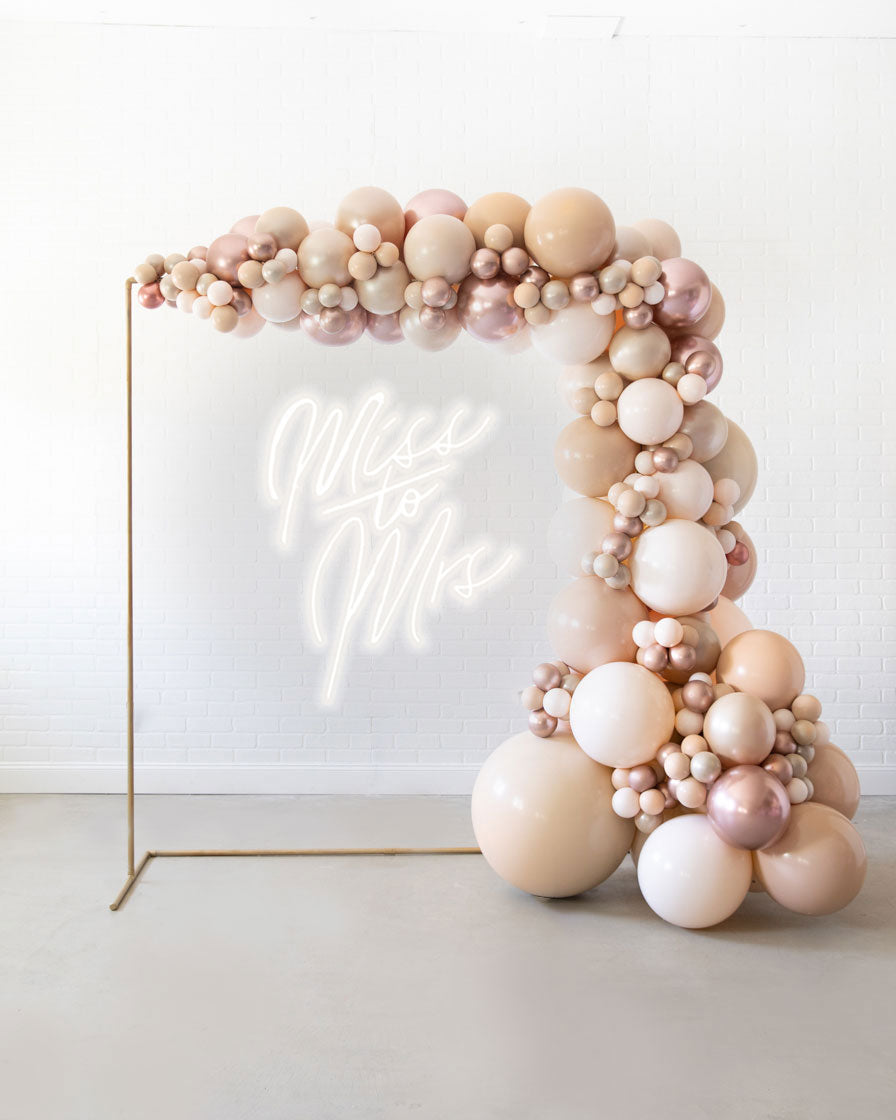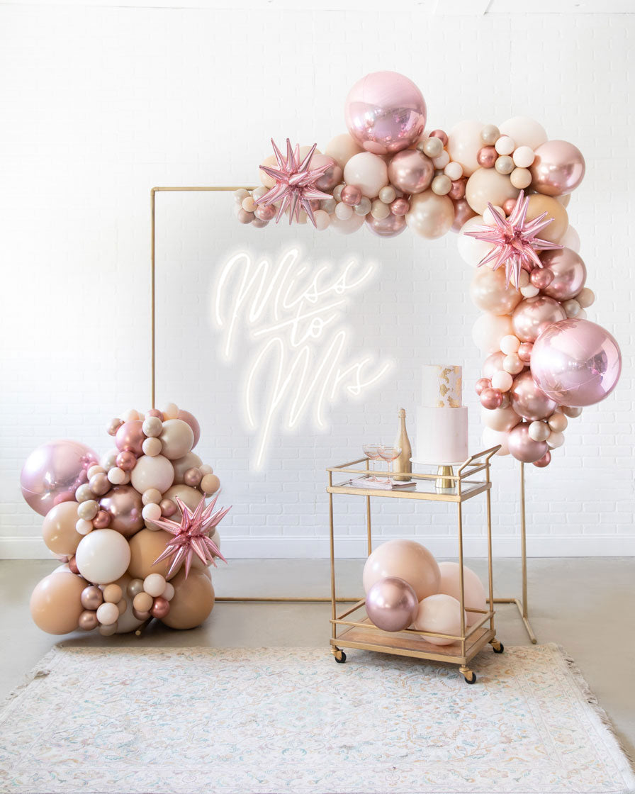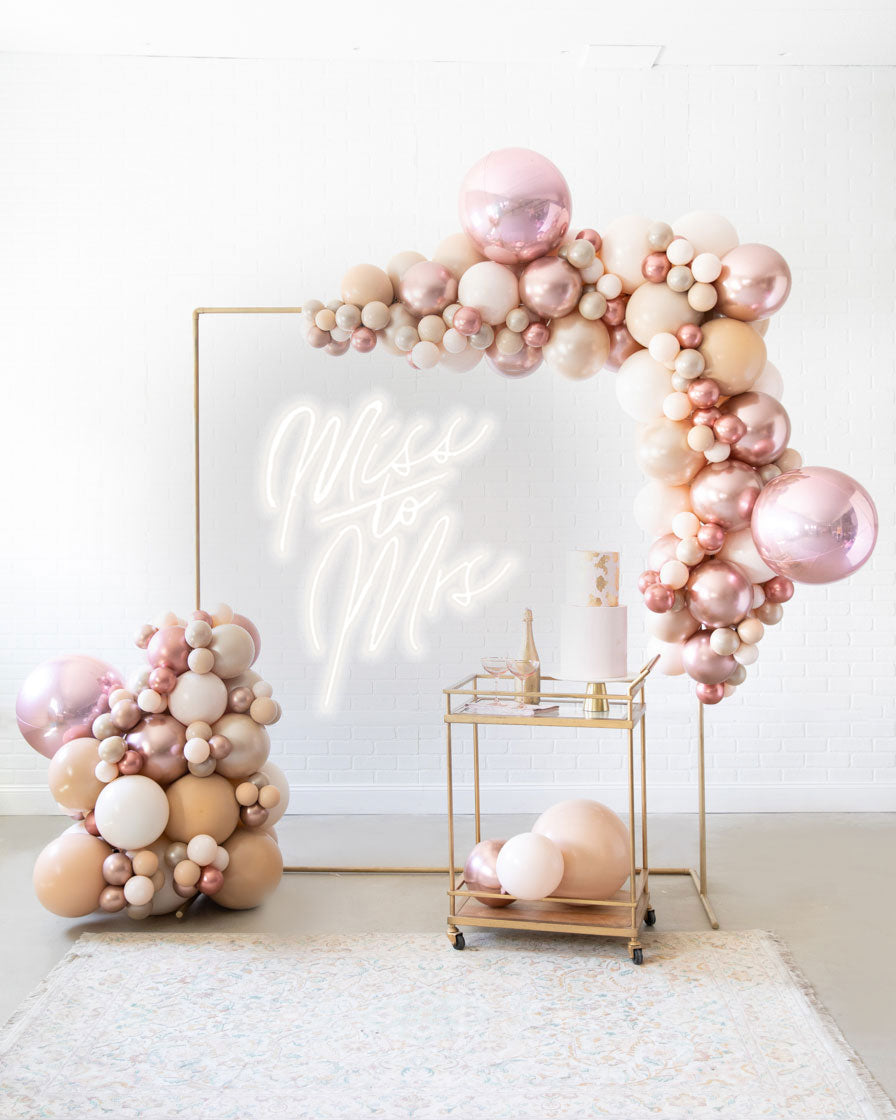 Light up your event with the ultimate backdrop! This balloon garland design includes balloons along a circular frame, as well as a beautiful neon sign to highlight your occasion in style! This works perfectly in any space and will wow your guests!
