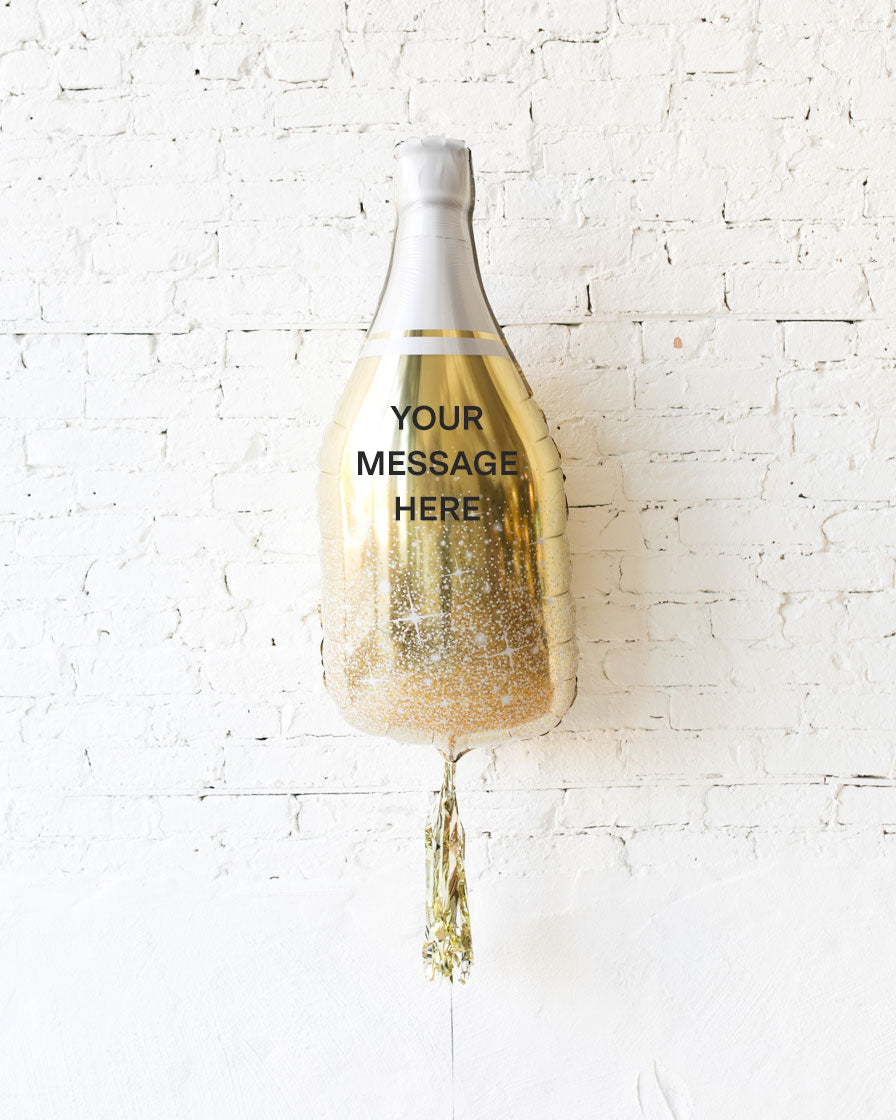 Gold Champagne Bottle Foil Balloon with Gold Skirt