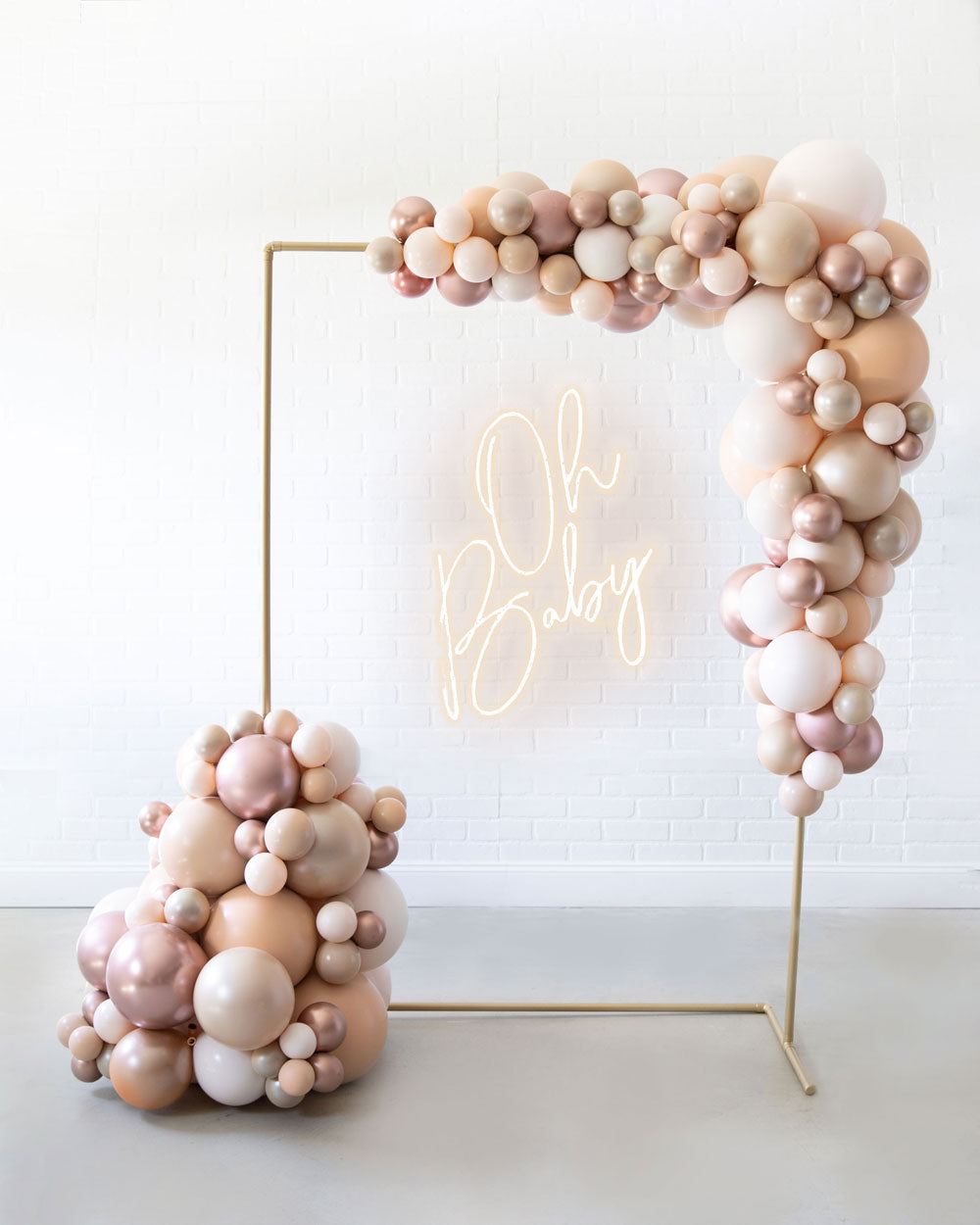 Light up your event with the ultimate backdrop! This balloon garland design includes balloons along a circular frame, as well as a beautiful neon sign to highlight your occasion in style! This works perfectly in any space and will wow your guests!