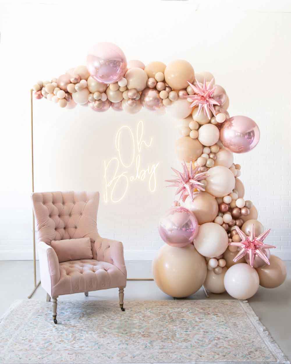 Light up your event with the ultimate backdrop! This balloon garland design includes balloons along a circular frame, as well as a beautiful neon sign to highlight your occasion in style! This works perfectly in any space and will wow your guests!