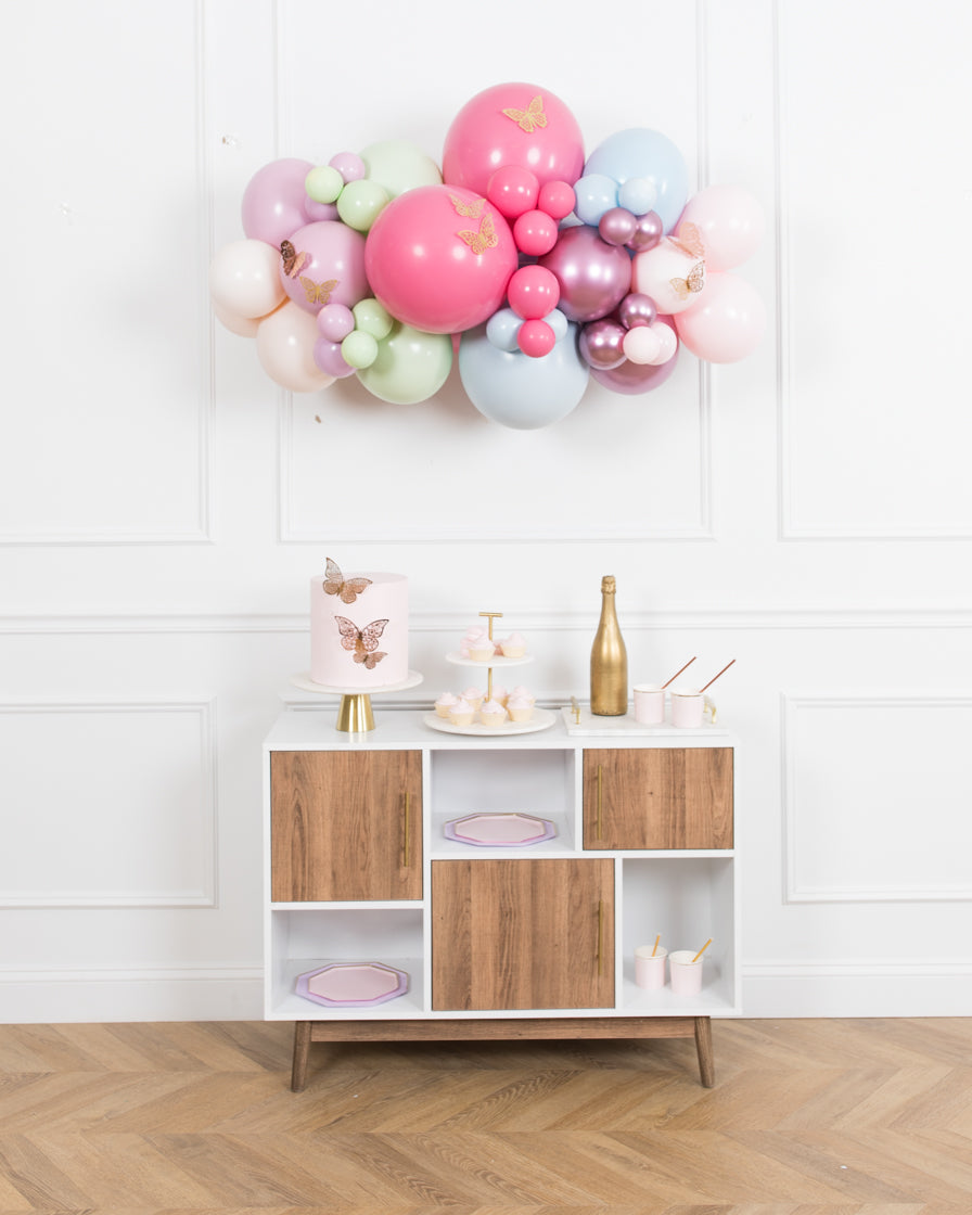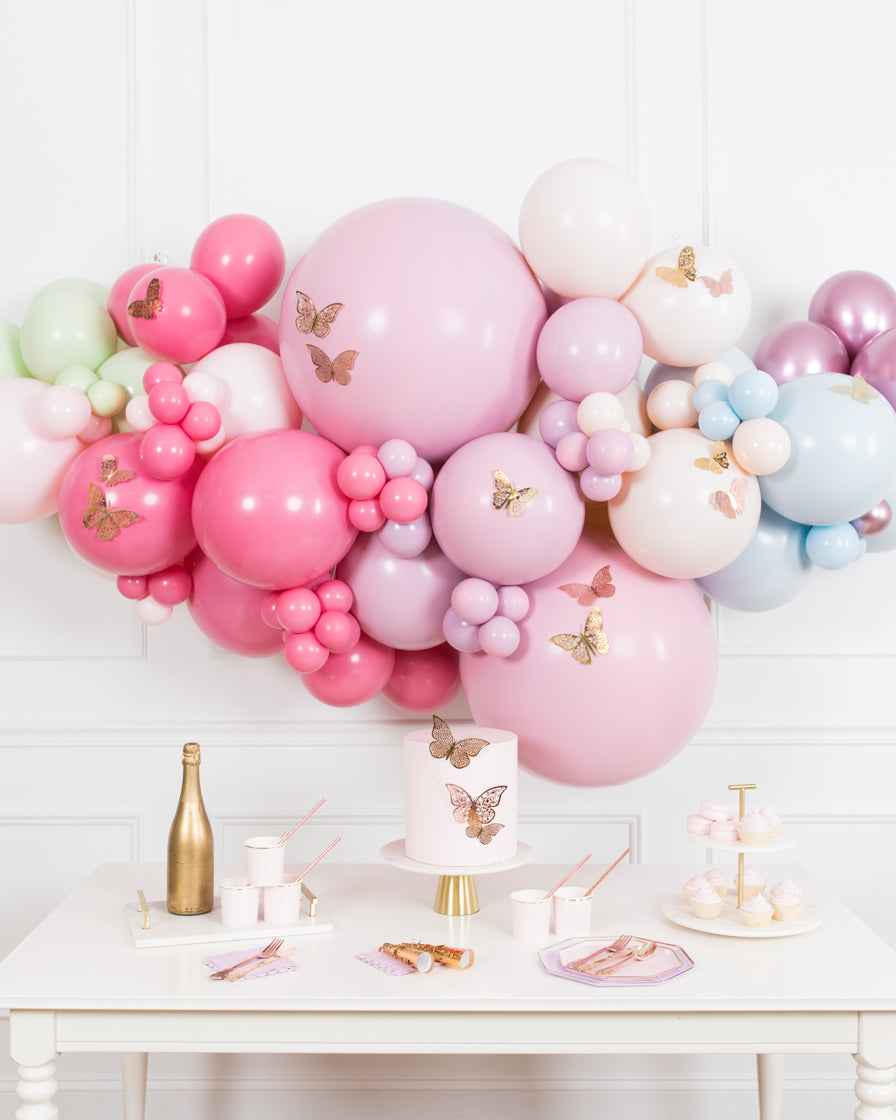 Spread some cheer with this eye-catching balloon garland. A great way to celebrate an important occasion, this air-filled balloon backdrop piece can be installed above a sweets table or on a wall for a photo op. Complete the look with giant balloons or balloon columns from this butterfly collection.