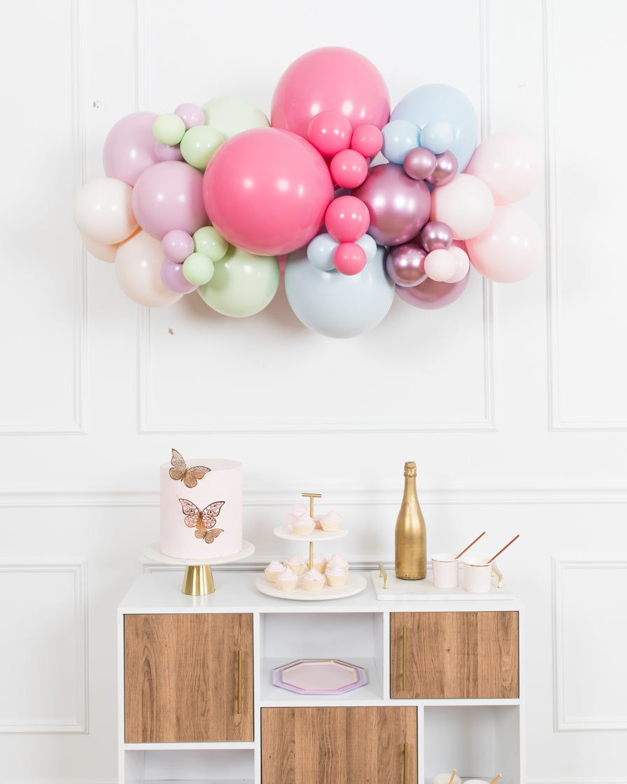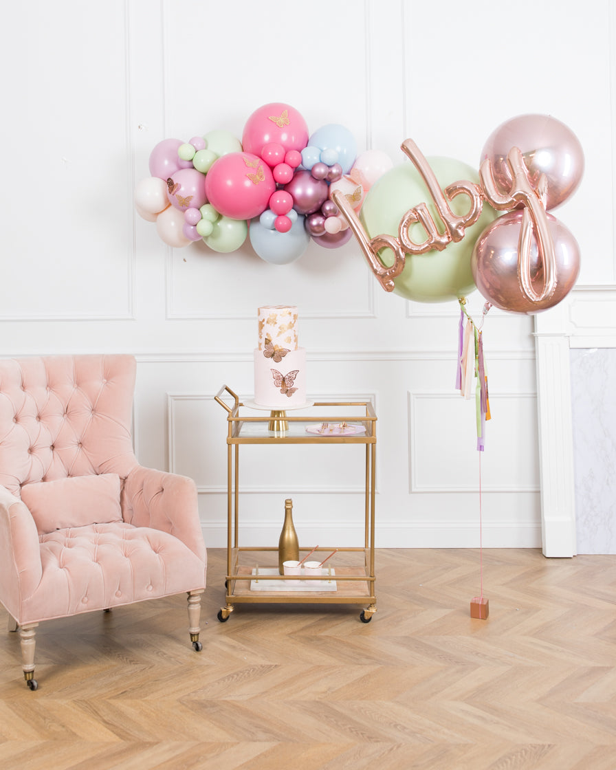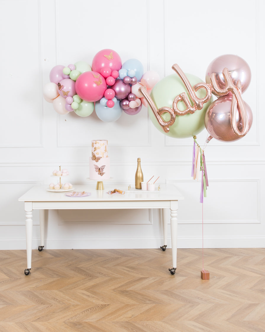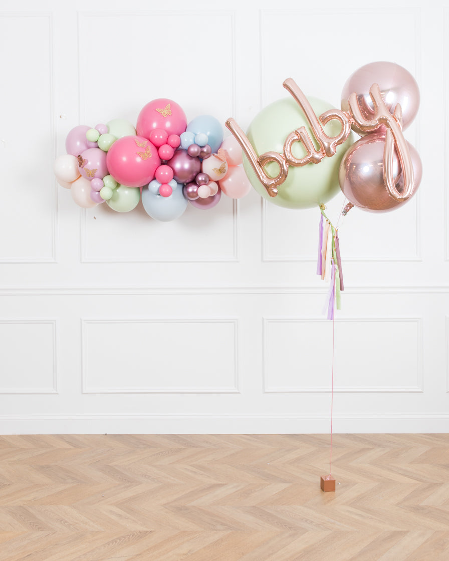 Make the ultimate backdrop with this fun and festive butterfly garden inspired backdrop. This set includes a 3ft garland and baby giant bouquet for a picturesque party.
