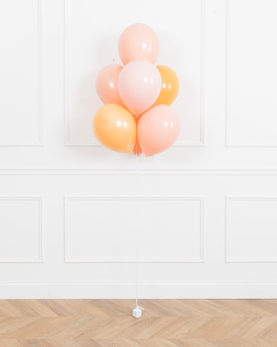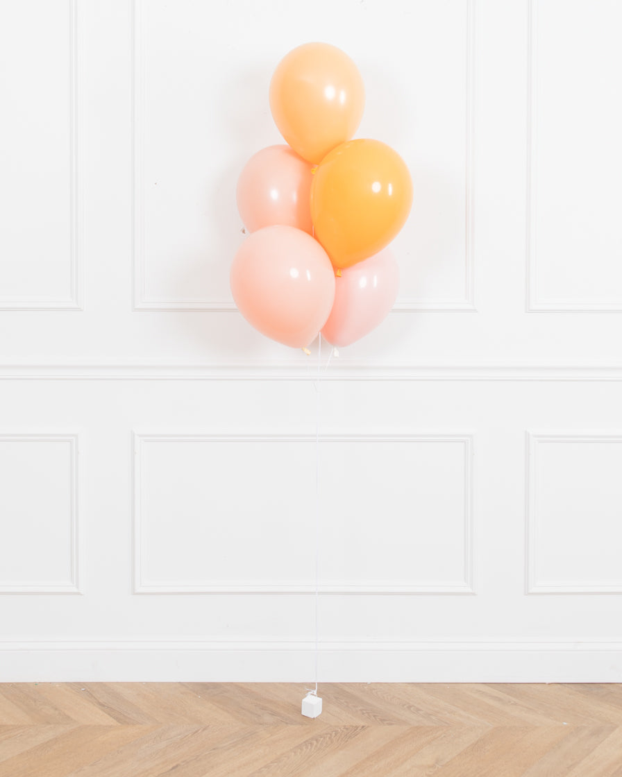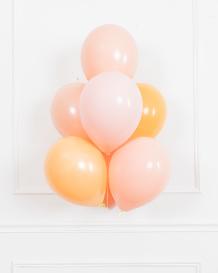 Create an elegant shower with a classic helium-filled balloon bouquet that can dress up any space. Includes 5 or 7 balloons in a palette of pinks, apricots and blush for a citrus themed celebration! Perfect for events at home, restaurants, venue or party rooms.