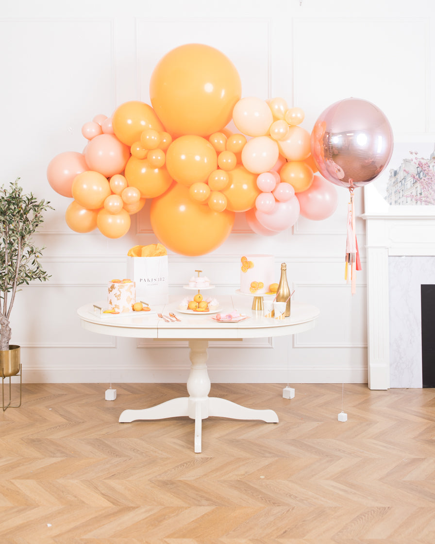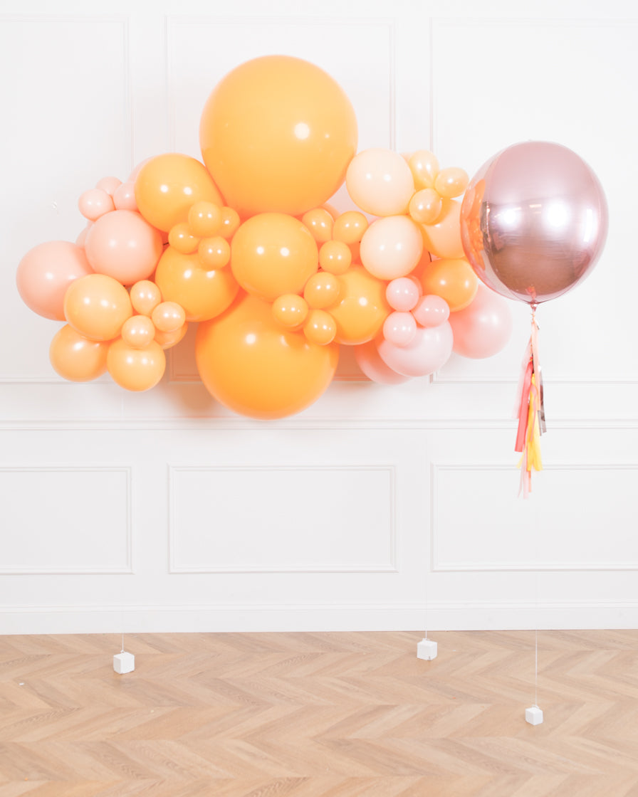 Create a beautiful celebration with this fun citrus themed set. This includes a 6ft floating balloon garland and rose gold orb balloon. Installation not required so you can create an instant party anywhere.
