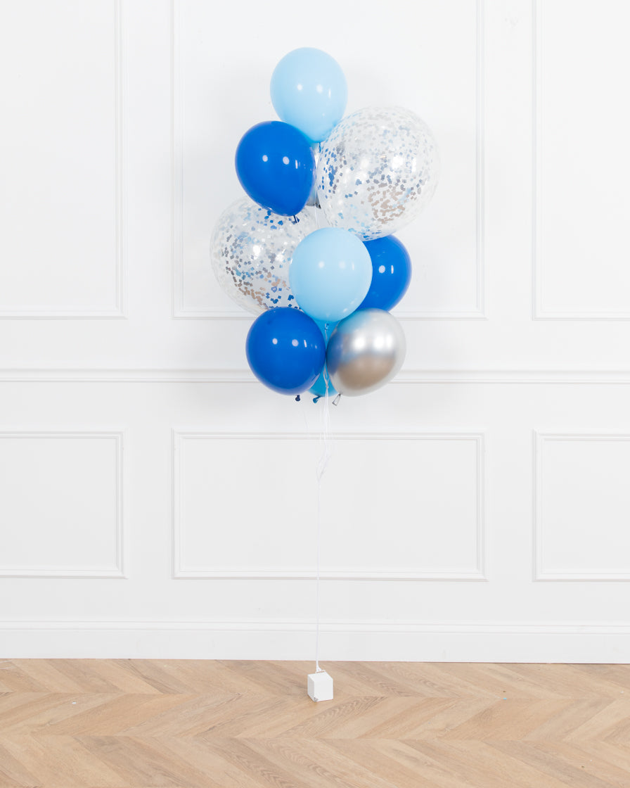 Bring plenty of shine to your corporate party with our classic confetti balloon bouquet. Personalize the look with your brand colors and use this for a holiday party, launch event or trade show. This product is Ready-To-Party™. Comes inflated and on a weight Simply unbag and enjoy!