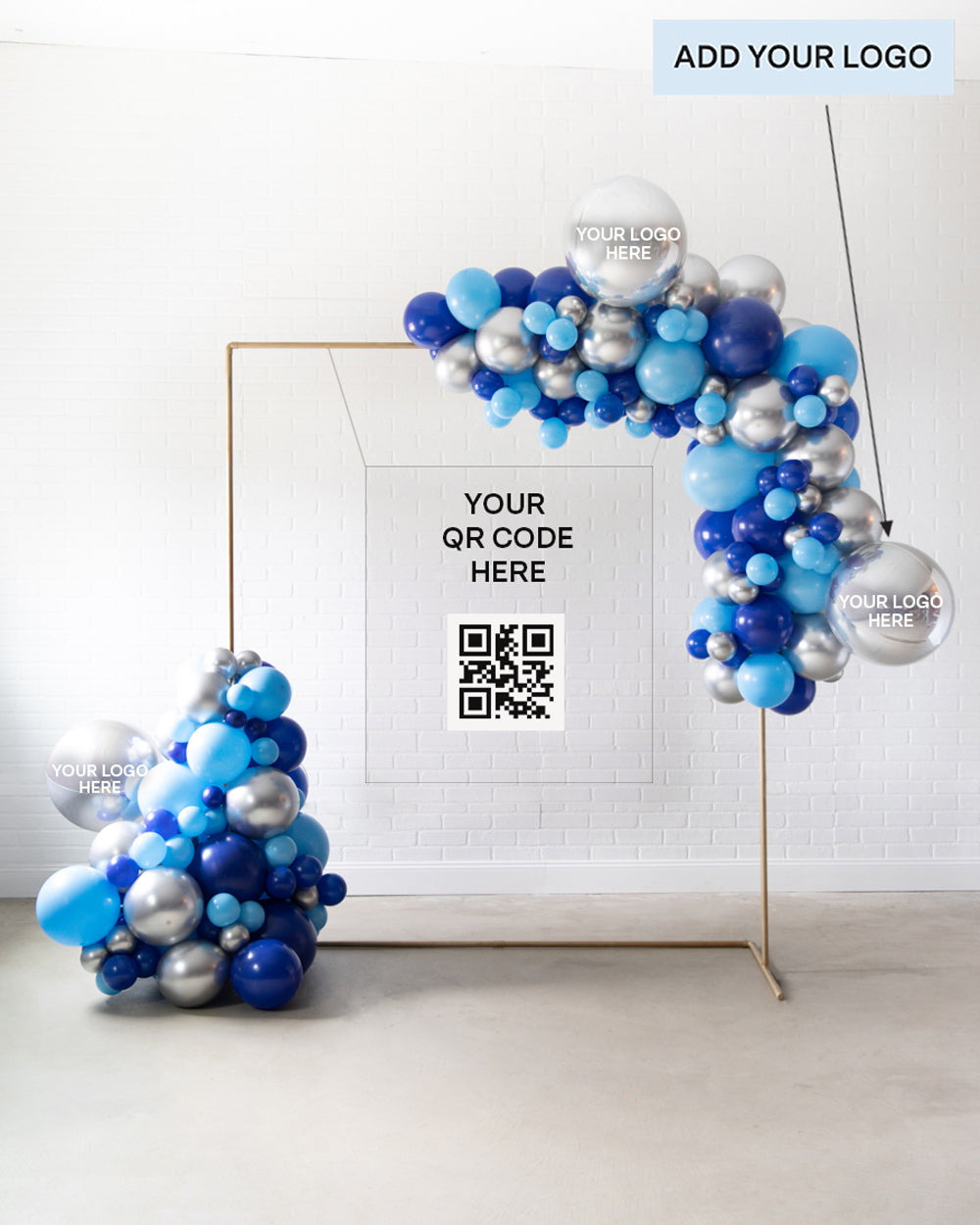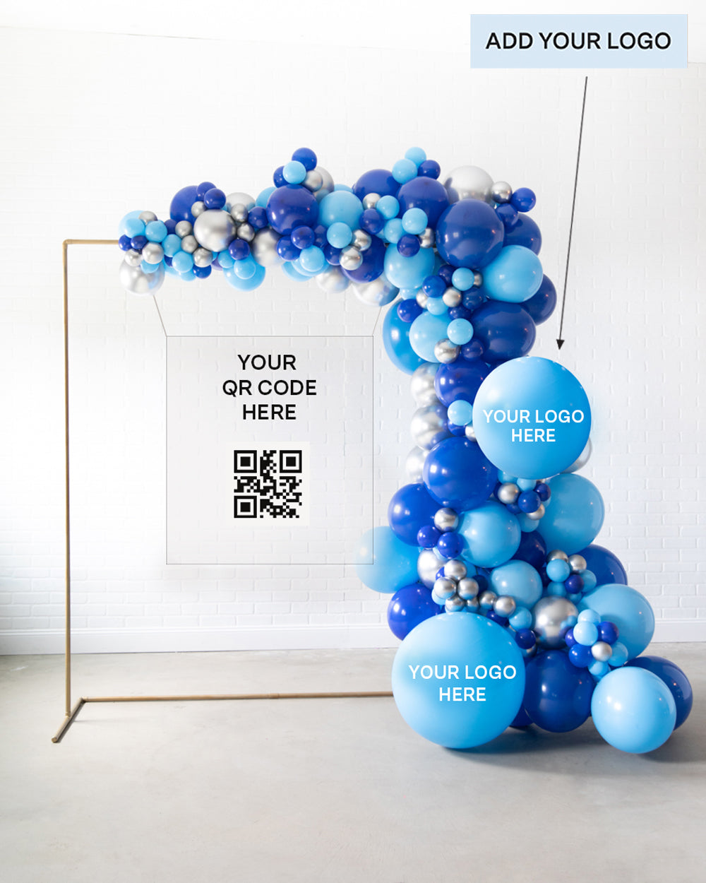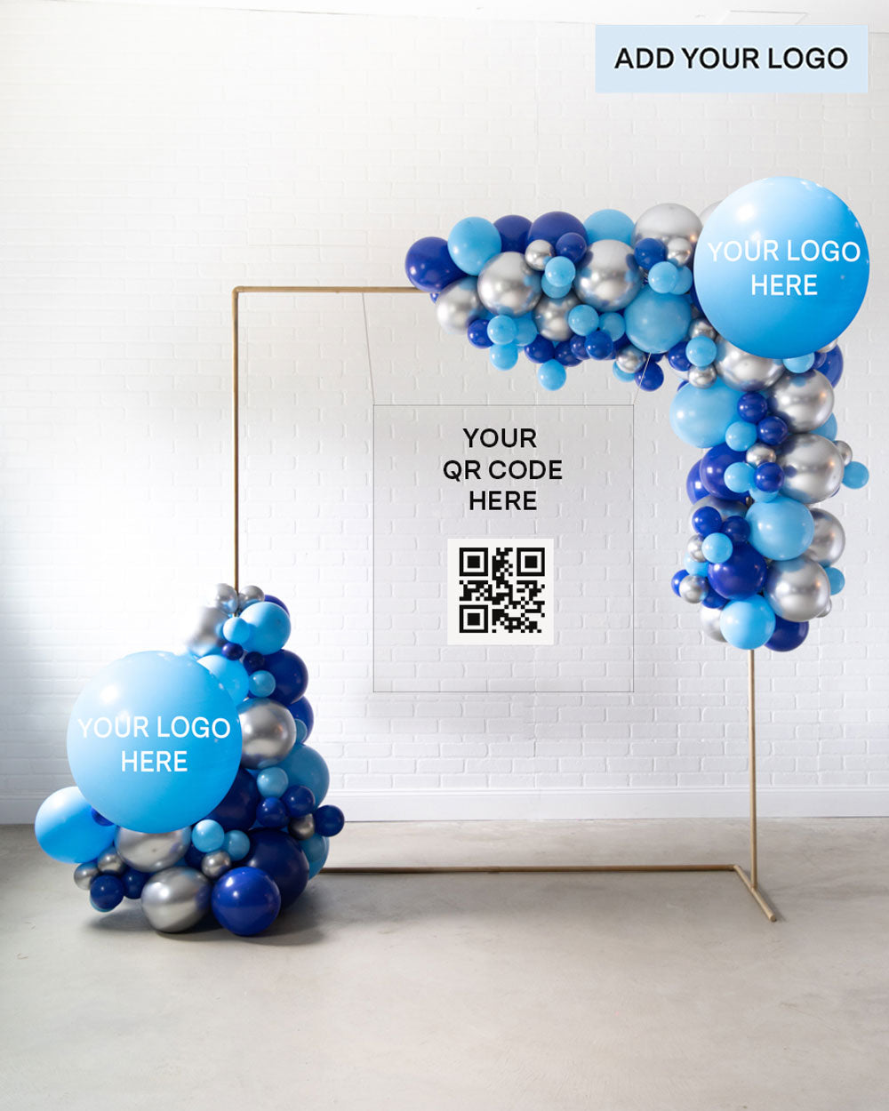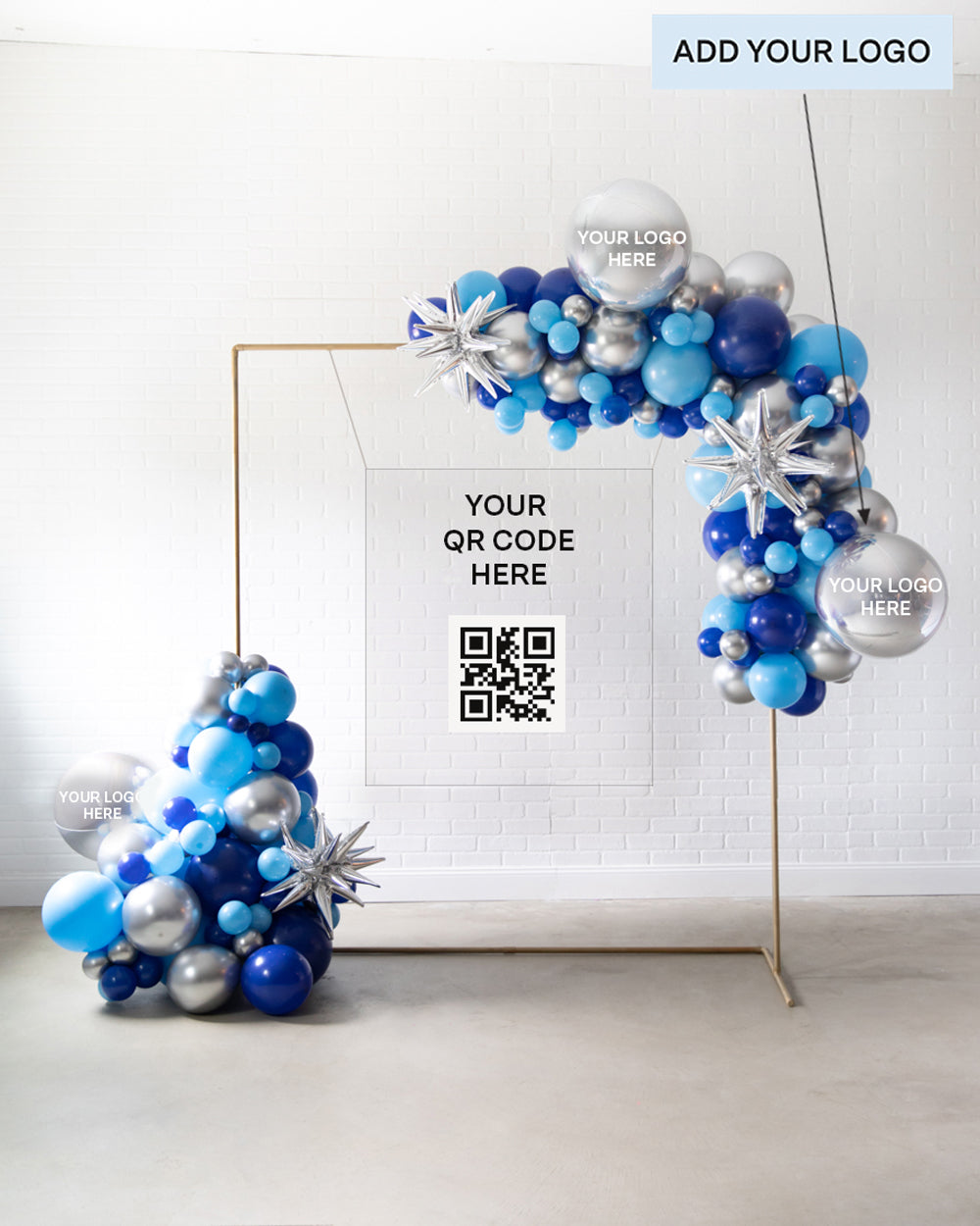 Instantly transform your corporate event with our small frame and balloon garland design! Create a bigger impact by adding foils accents and stars. Increase your brand's presence by adding your logo.