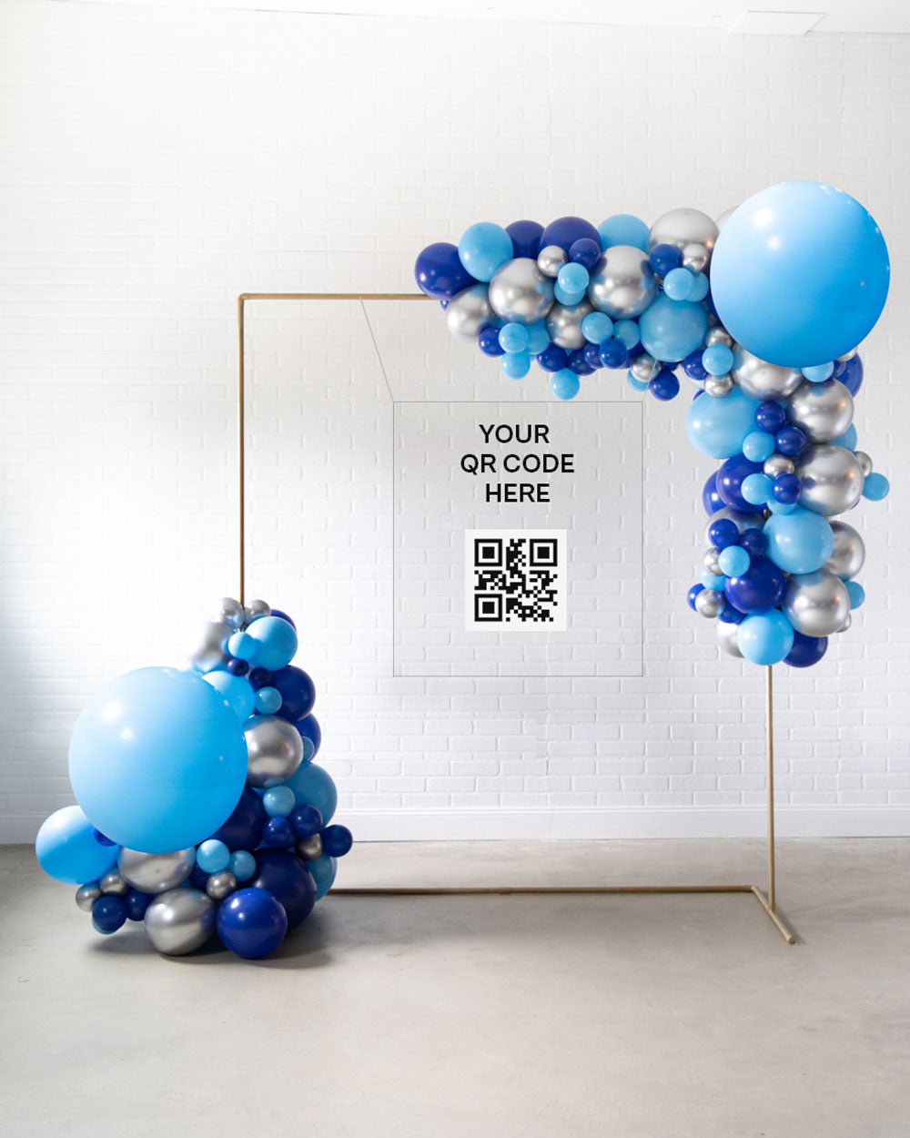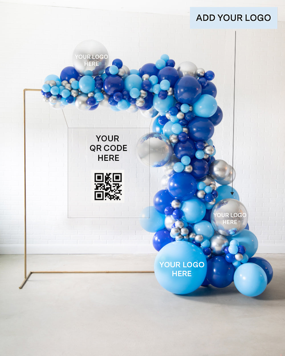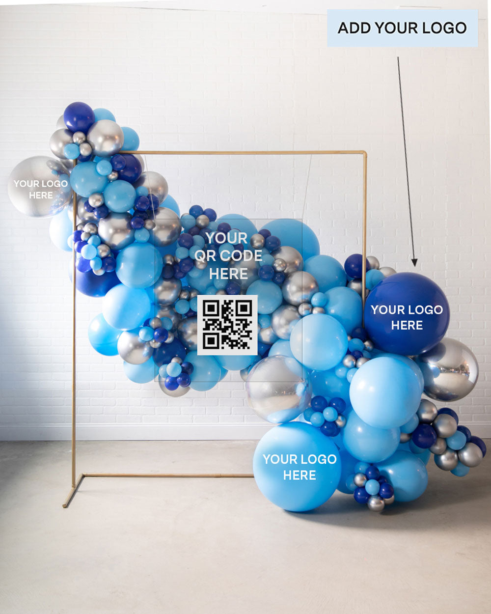 Instantly transform your corporate event with our small frame and balloon garland design! Create a bigger impact by adding foils accents and stars. Increase your brand's presence by adding your logo.