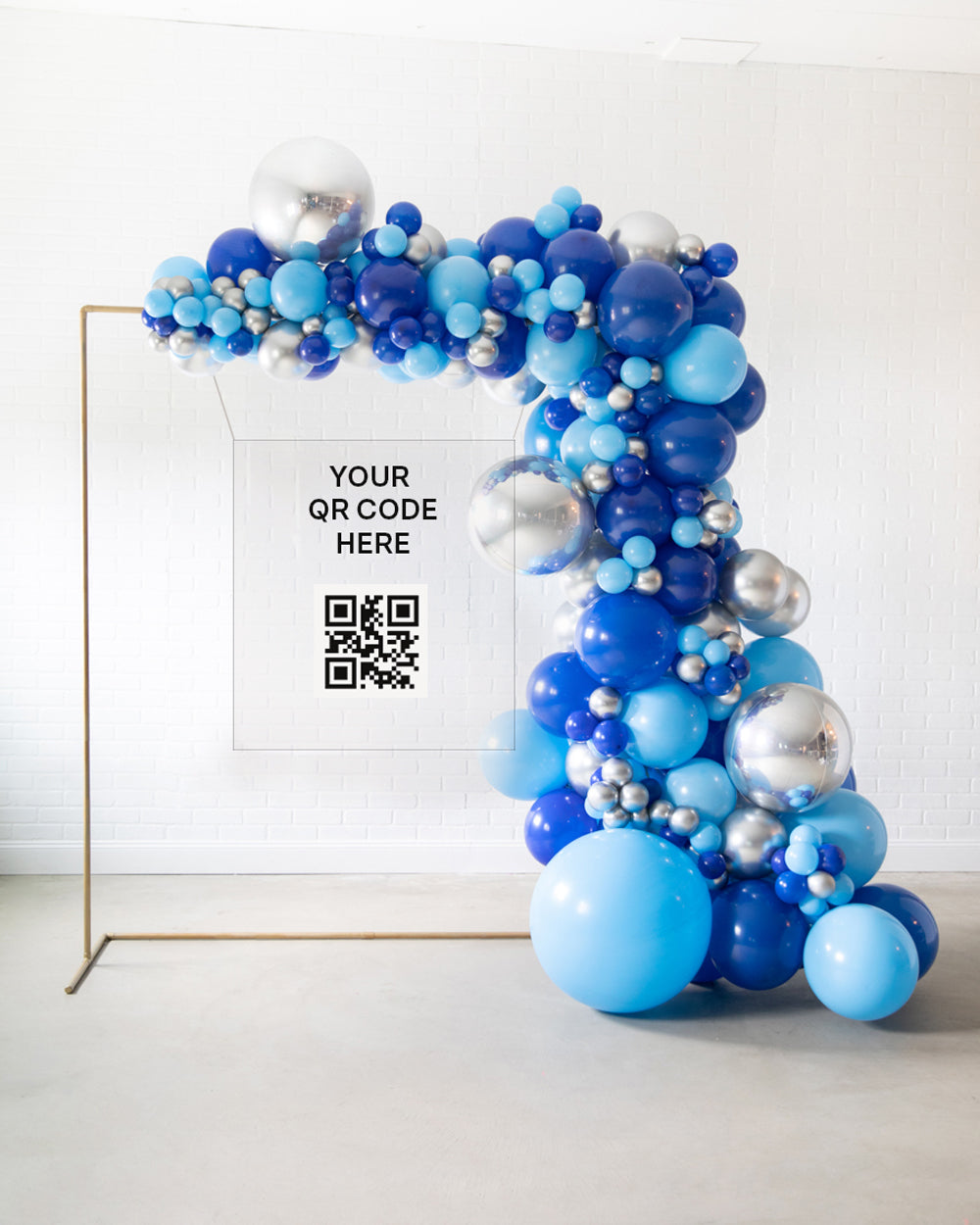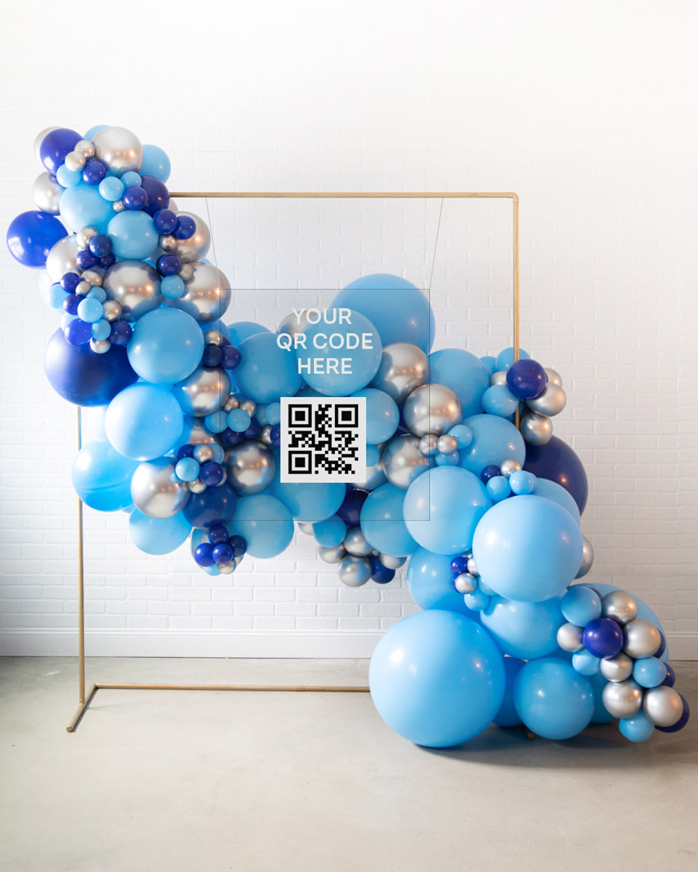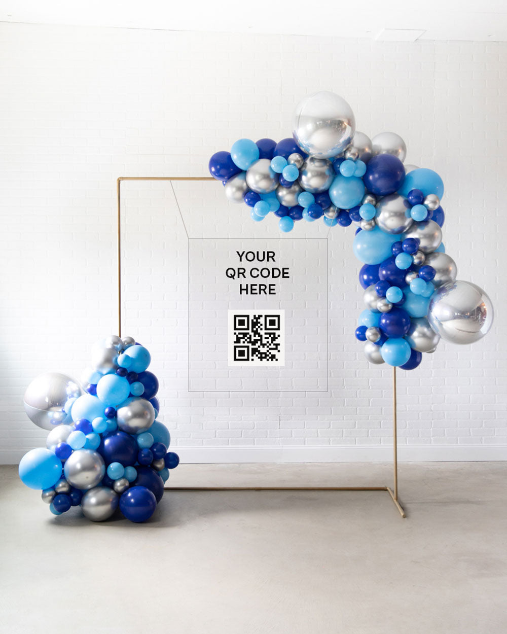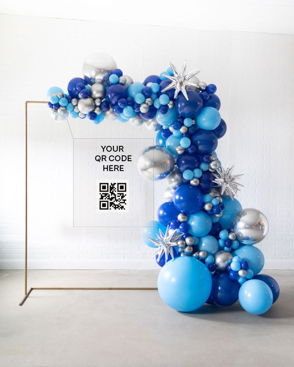 Instantly transform your corporate event with our small frame and balloon garland design! Create a bigger impact by adding foils accents and stars. Increase your brand's presence by adding your logo.